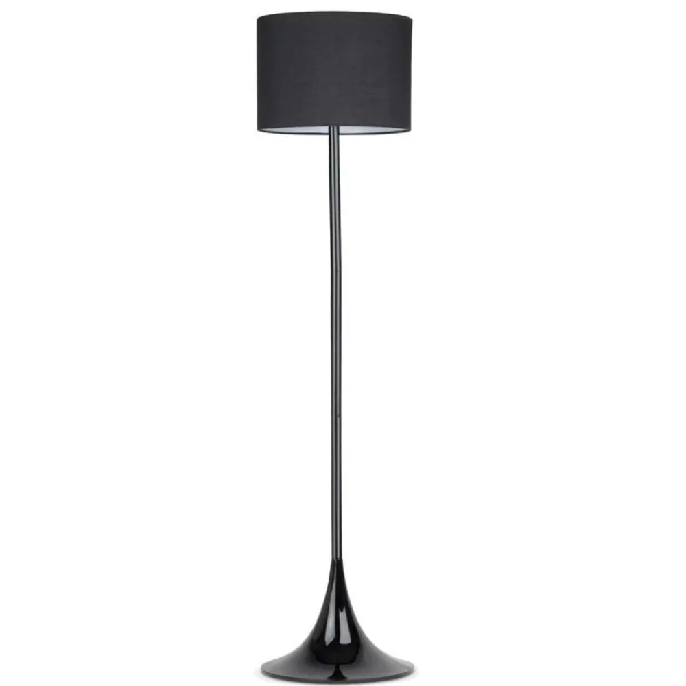 Black gulvlampe har et stilfuldt og imponerende udtryk som ikke mindst fremkaldes af den kegleformede fod i sort, blankt metal. En sort stofskærm supplerer gulvlampens repræsentative og elegante design. Den spreder et behageligt, blændfrit lys som skaber en stemningsfuld atmosfære i dit hjem.