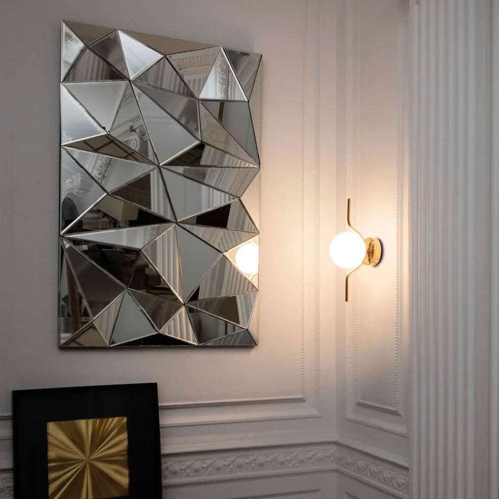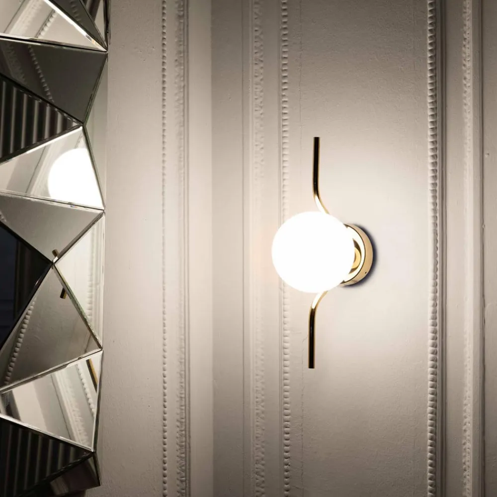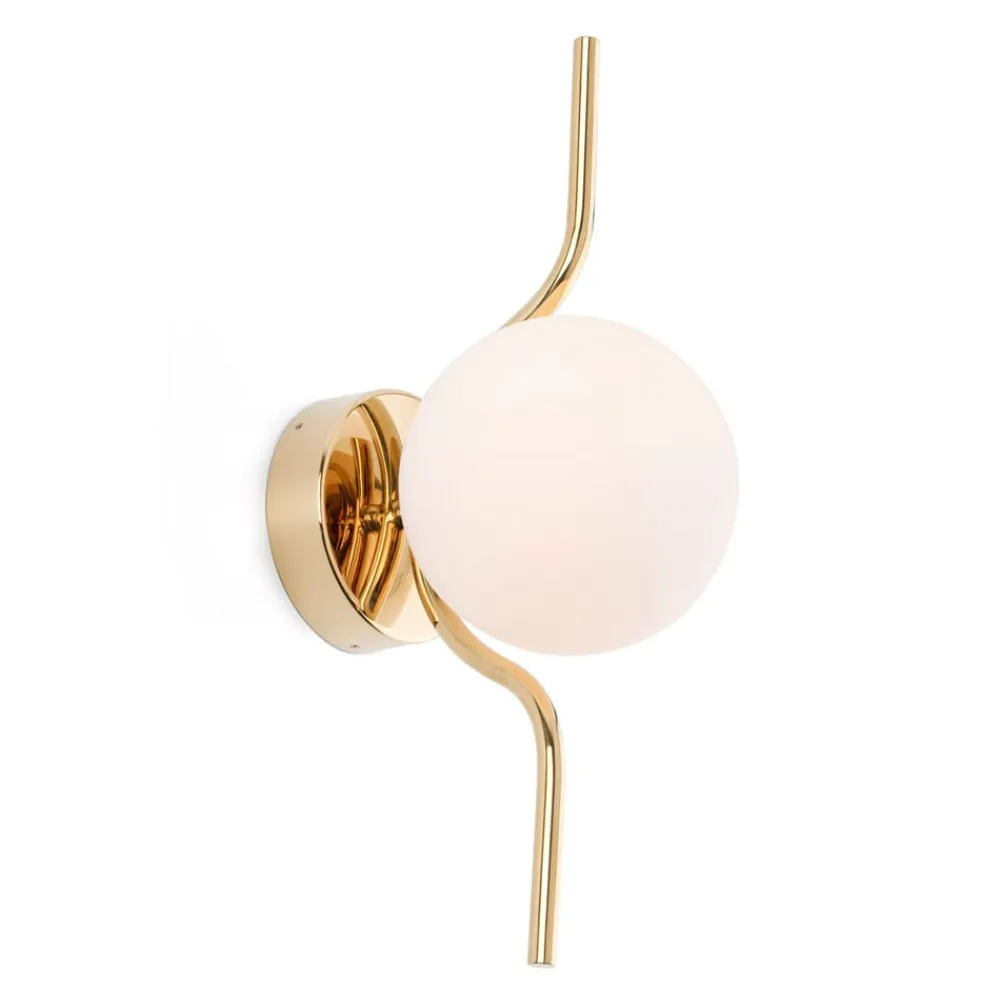 Le Vita – skinnende guld LED-væglampe med glasskærm