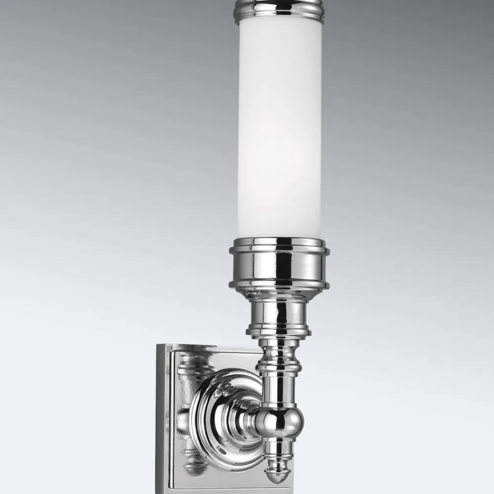 Designet, der er lånt fra den elegante Tudor-stil, er umiskendelig i Payne udsmykkede væglampe med en enkelt flamme: dens skinnende forkromede vægmontering og stel er prydet med dekorative ornamenter, det hvide glas slutter også med et poleret kromelement. Opalglasskærmen udsender lyst, behageligt lys på alle sider for afbalanceret omgivende belysning. Payne Ornate – placeret individuelt eller parvis – er ideel til spejlbelysning.