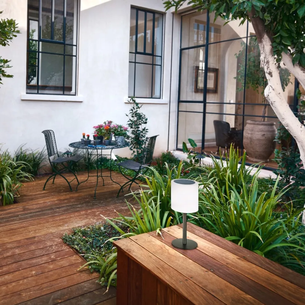 Lesina LED-solar-bordlampe, sandsort/hvid