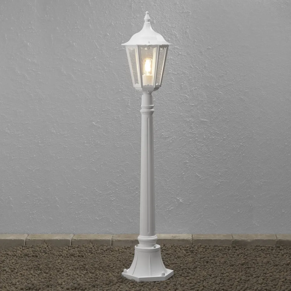 Stilfuld Firenze-stibelysning i aluminium giver en stemningsfuld atmosfære Firenze er en klassisk, antikt udseende stibelysning i form af en lanterne, der giver pålidelig belysning i udendørs områder. Leveringen omfatter stolpen.