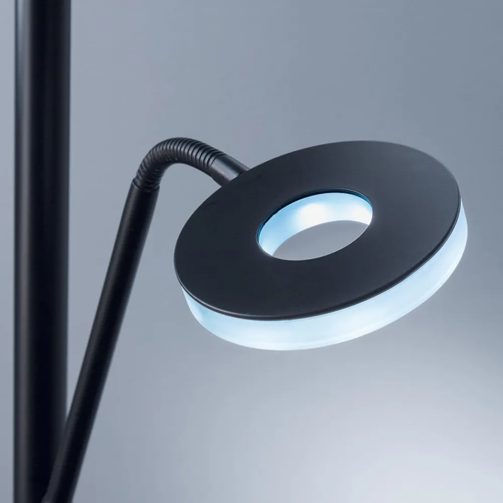 Dent LED-uplight: integreret CCT-funktion til skræddersyede lysstemninger Dent LED-uplight med læsearm er en berigelse for ethvert rum. Med sit moderne design i elegant sort passer den perfekt ind i indretningen af stuen, arbejdsværelset eller spisestuen. Den integrerede CCT-funktion gør det muligt at justere lysets farvetemperatur efter behov – fra varme toner, der skaber en hyggelig atmosfære, til køligere nuancer, der fremmer koncentration og produktivitet. Den integrerede LED-lyskilde er kendetegnet ved sin energieffektivitet og giver en langtidsholdbar belysningsløsning. Uplighten er udstyret med en dæmper, der gør det muligt at styre lysstyrken præcist og dermed tilpasse lysforholdene optimalt til den pågældende situation. Den ekstra læsearm på Dent uplight giver målrettet lys til øjeblikke, hvor koncentreret arbejde eller afslappet læsning er påkrævet. Kombinationen af hovedlyskilde og læselampe gør denne uplight til et multifunktionelt belysningselement, der opfylder både praktiske og æstetiske krav.