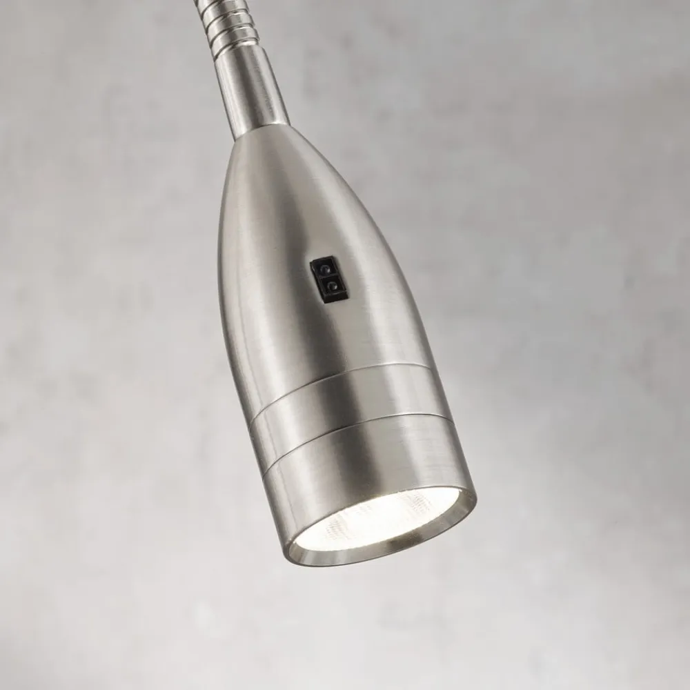 LED-væglampen Sten er ekstremt fleksibel, fordi lampearmen, som den slanke lampeskærm er anbragt på, er meget fleksibel. En stikkontakt er tilstrækkelig til at tilslutte lampen, fordi den er udstyret med et kabel med stik. Lysstyrken på de indbyggede LED’er kan dæmpes trinløst ved hjælp af bevægelsesstyring. Denne fleksibilitet gør LED-væglampen Sten til det ideelle lys nær sengen.
