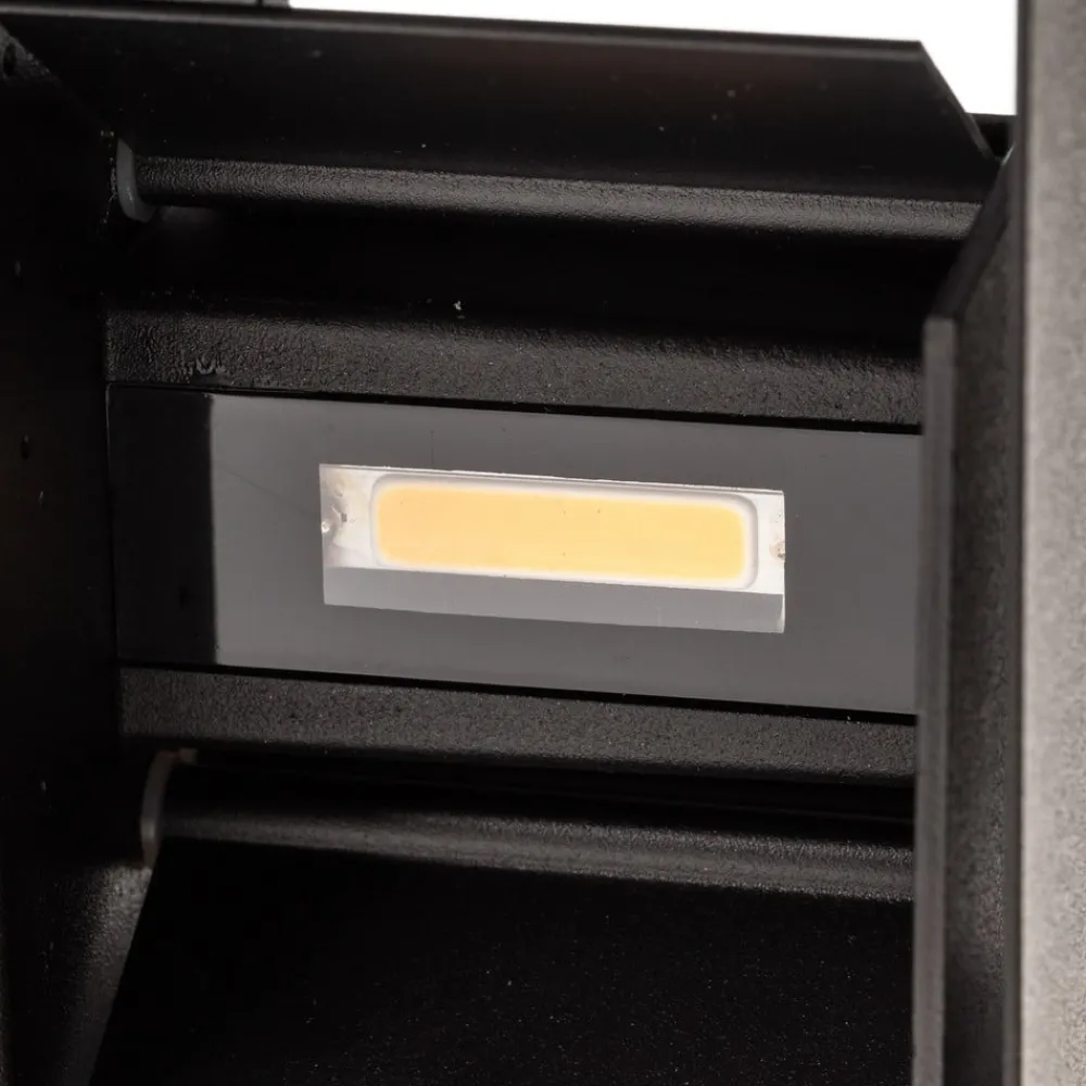Matsort LED-udendørslampe med justerbar strålevinkelDet tidløse design af Wall LED-udendørslampen lover mange års glæde af produktet. Takket være den kantede form og det behageligt diskrete design i matsort metal matcher lampen mange facader og stilarter. Lyset fra de varmhvide LED’er er både nedadrettet og opadrettet. Desuden kan strålevinklen justeres efter ønske. Den smukke, indirekte lyseffekt giver ikke kun den nødvendige orientering i mørket, men ser også godt ud.