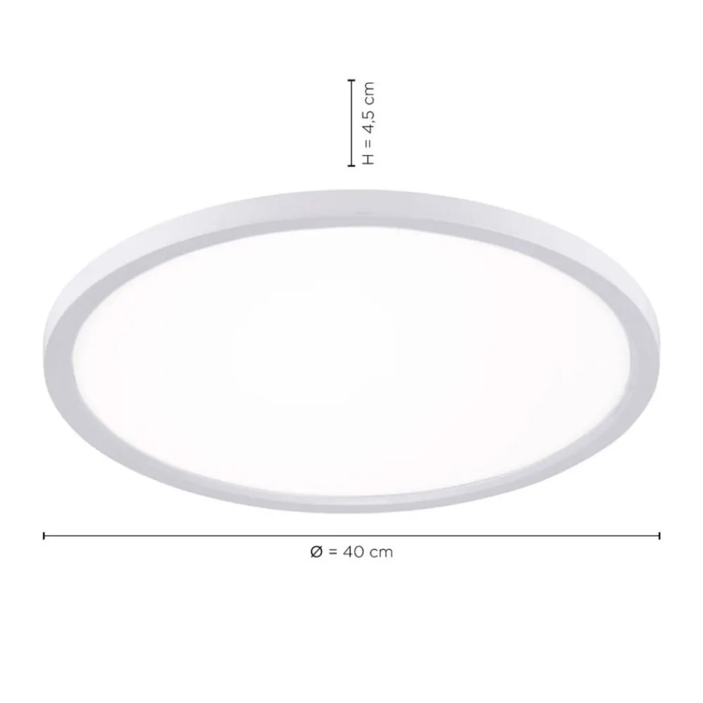 Rund og flad gør denne LED-loftlampe Flat også værelser med lave lofter lyse og indbydende uden at blænde, hvilket er muligt takket være plastdiffusoren. Deres homogene lysfordeling fordyber hvert rum i et behageligt lys, som også bekvemt kan styres via en fjernbetjening , der er inkluderet i leveringsomfanget. lysfarve kan tilpasses den aktuelle situation via fjernbetjening, og i kombination med dæmpbarheden kan en typisk daglig rutine simuleres. Lysstyrken kan indstilles som ønsket, og takket være hukommelsesfunktionen kan de individuelle indstillinger gemmes direkte.