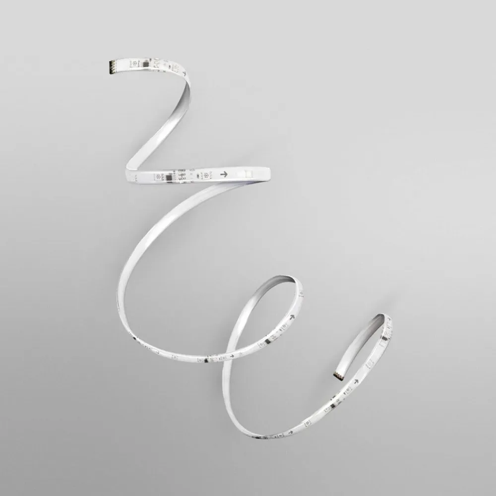 LED-strip Flex Remote med farvet og varmt hvidt lys – kan styres med fjernbetjening I tørre indendørs områder gør LED-strip Flex Remote det nemt at opnå en stemningsfuld omgivelsesbelysning i den ønskede lysfarve og lysstyrke. Den fleksible og afkortelige strimmel kan tilpasses perfekt til det pågældende miljø. Strømforsyningen sker via stikkontakten takket være det medfølgende kabel med plug-in-strømforsyningsenhed. Der medfølger en fjernbetjening (inkl. batteri) til styring (tænding, dæmpning, valg af lysfarver og farveskift).