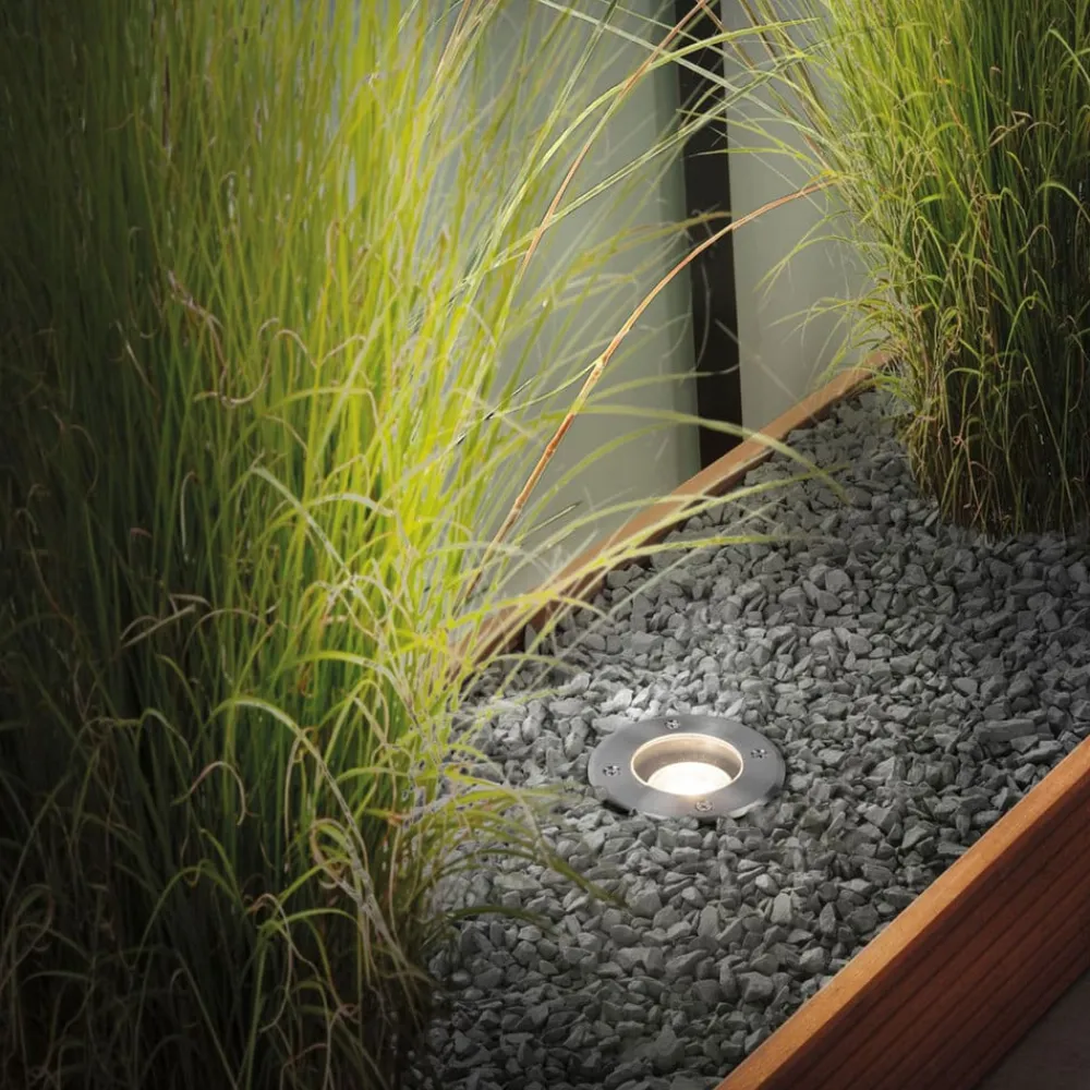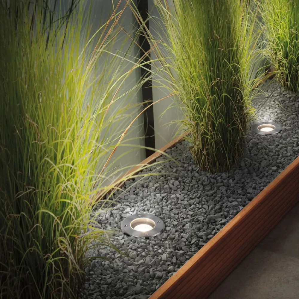 Med nedgravningslampen Floor i stål kan du sætte dekorative lysakcenter i hele udendørsområdet, også i områder, hvor der er gangtrafik. Nedgravningslampen er belastbar op til 500 kg. Den passer i en indbygningsåbning med en diameter på 10,5 mm og kan udstyres med en GU10-pære efter eget valg med en maksimal effekt på 10 W. Den er udstyret med en 30 cm lang netledning og leveres inklusive indbygningsboks, som ikke kun letter monteringen, men også udtagningen ved senere vedligeholdelse eller udskiftning af pæren.