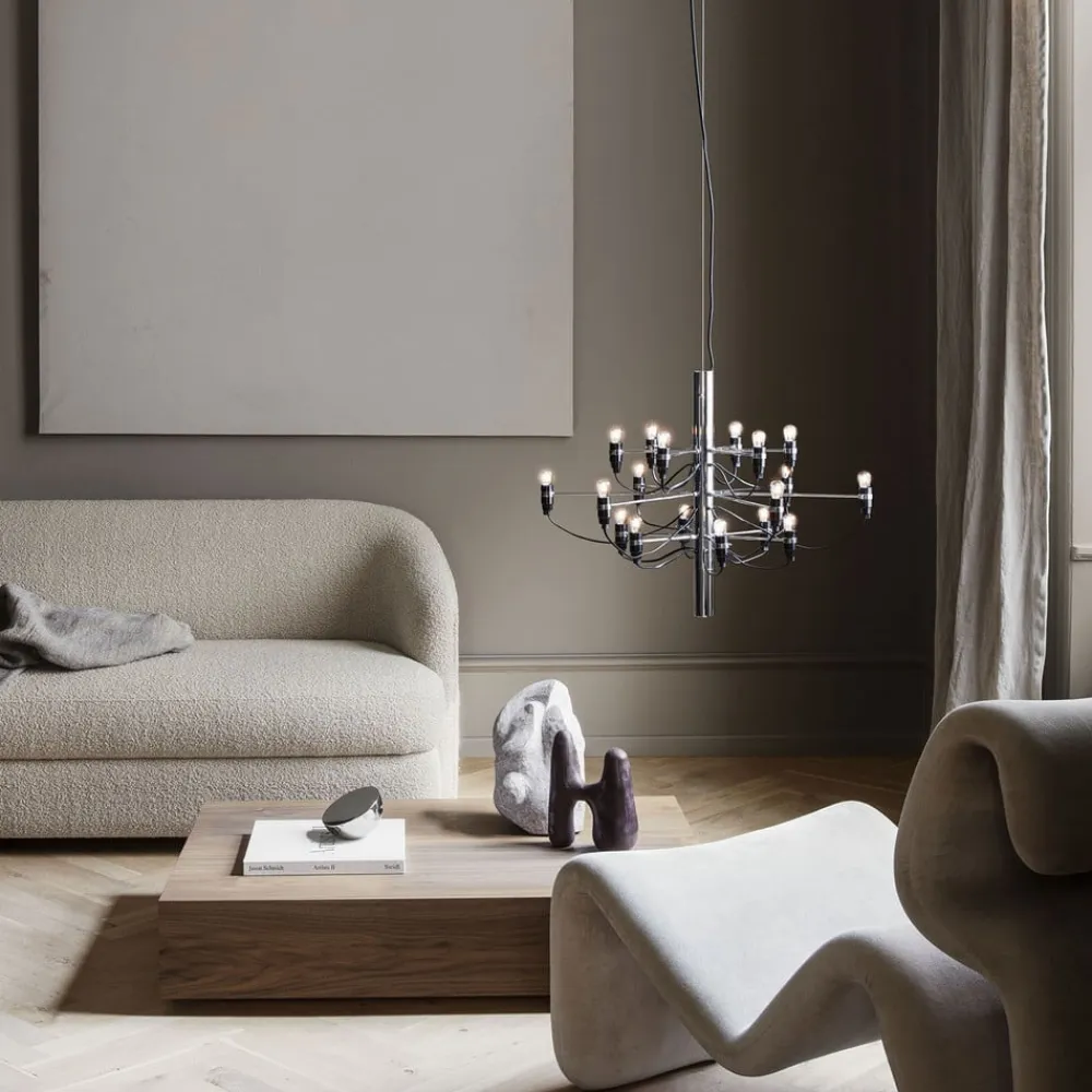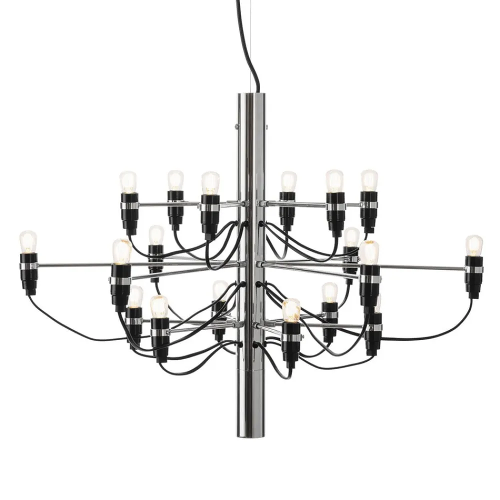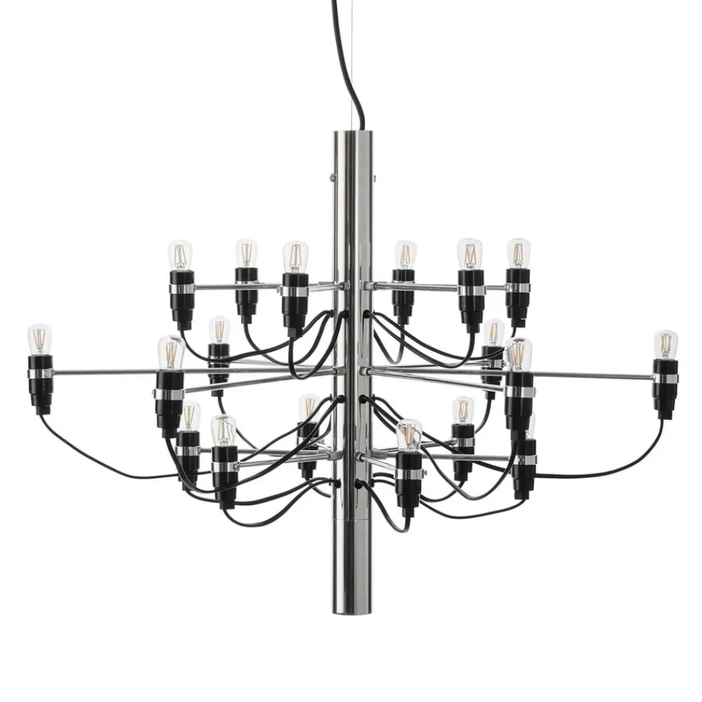 Minimalistisk LED-lysekrone i moderne æstetik – FLOS 2097/18Lampen med 18 flammer 2097/18 fra FLOS er en moderne designstruktur, der forener modernitet og klassicisme i form af denne usædvanlige lysekrone. På stålsøjlen i midten er der forskellige lange arme, som hver især bærer LED-lampen i matteret optik, der er placeret i enden. Dette, samt det sorte forsyningskabel, er bevidst vist åbent og giver 2097/18-lysekronen sin helt særlige og individuelle charme. Uanset om den er placeret over spiseborde eller i stuen, giver den moderne LED-lysekrone 2097/18 et særligt præg til ethvert rum og er et spændende blikfang og en pålidelig lyskilde på samme tid. Ansvarlig for dette ekstraordinære design i sin oprindelige form er den italienske industrielle designer Gino Sarfetti (1912-1985), der betragtes som en af de vigtigste designere af lamper og lamper i det 20. århundrede. Designet af 2097-lampen blev skabt i 1958 og har intet mistet af sin stilfulde elegance den dag i dag.