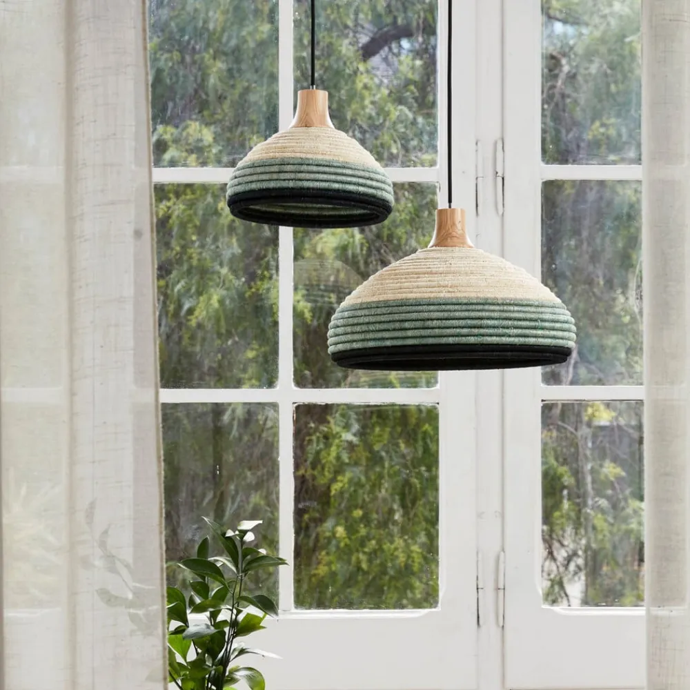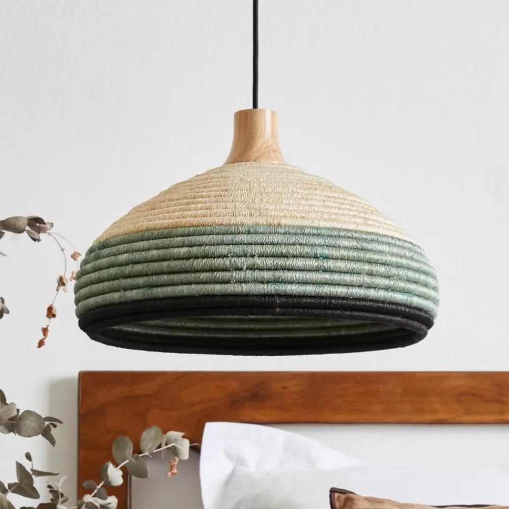 Håndlavet vedhængslampe Grass S af rattan og abacá