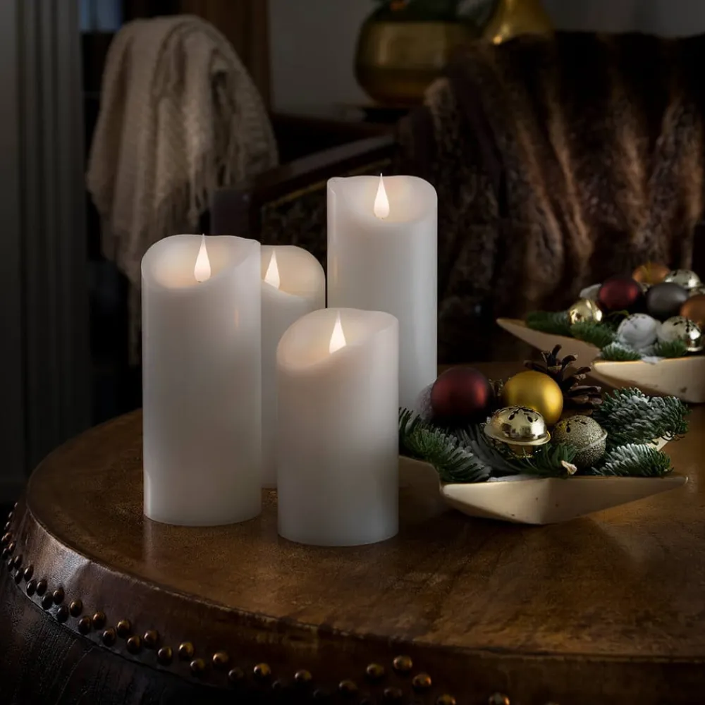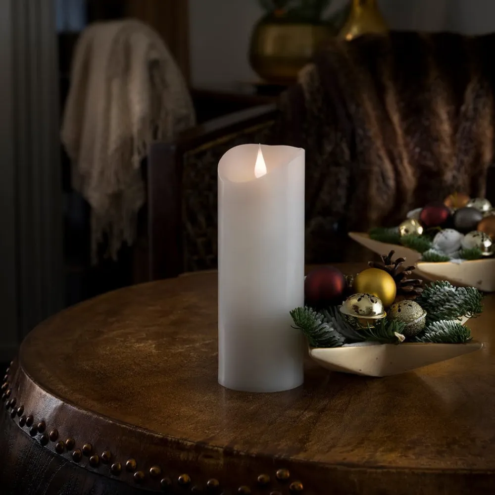 Kroppen på LED-lyset er lavet af ægte voks og har desuden en lysflamme med 3D-effekt, dvs. at flammen flakker frem og tilbage som et lys med ægte ild. Med den integrerede timer kan man forudindstille, om lyset skal være tændt i fire eller otte timer. Dette lys er med sit livagtige udseende et alletiders alternativ til ægte stearinlys og kan benyttes overalt, hvor åben ild ikke er tilladt som for eksempel i børnehaver eller på plejehjem. LED-lys Stearin er batteridrevet med to C-batterier. Batterierne er ikke omfattet af leverancen, men kan bestilles via tilbehøret.