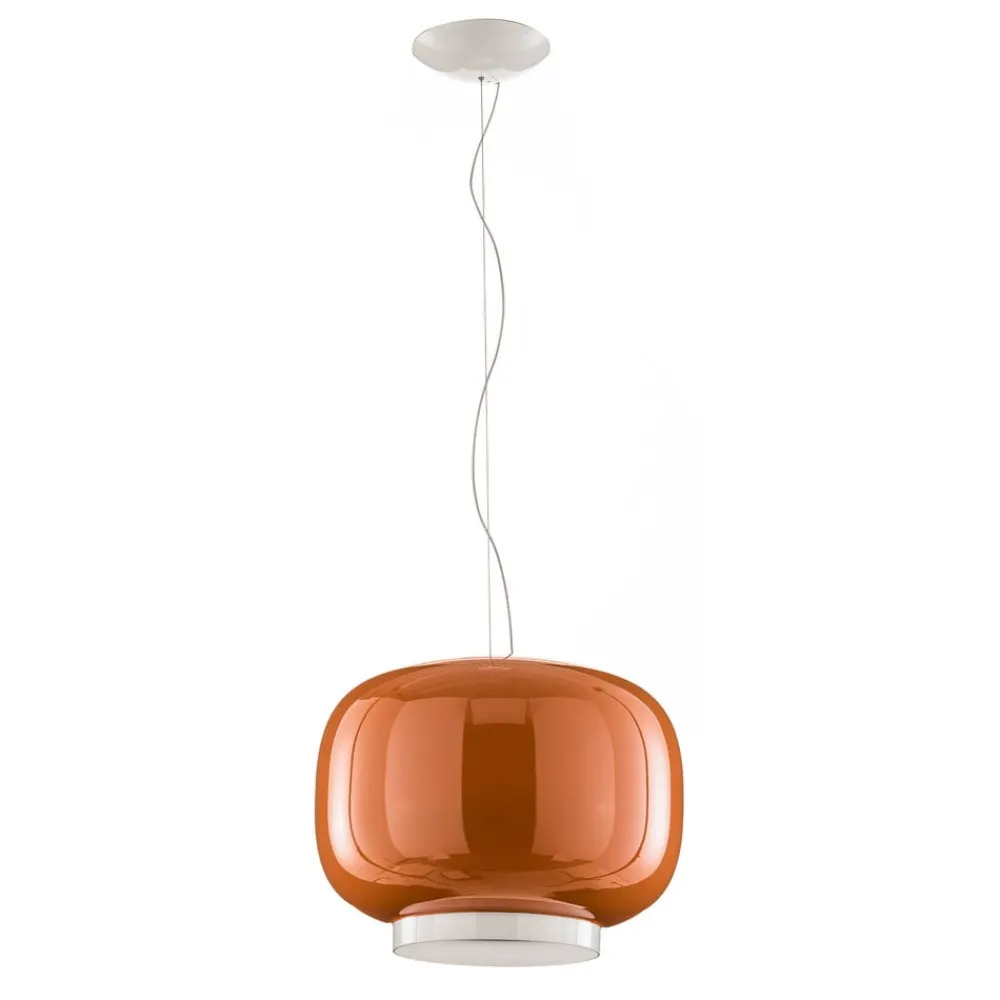 Chouchin 1 overbeviser med en varm orange farve, der danner en flot kontrast til den nederste hvide del. Lampens krop er lavet af mundblæst og lakeret glas. Farven er intens, strålende og helt uigennemsigtig. Kun ved den nederste åbning træder lyset ud og forvandler den nederste del til en lysende ring af lys. Den direkte lyseffekt gør LED-pendellampen Chouchin 1 til en ideel belysning til spiseborde, barer eller diske. Den spreder et blødt, varmt lys, der skaber en særlig og indbydende atmosfære.