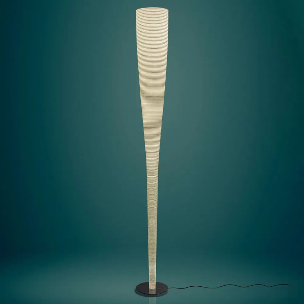 Mite Anniversario – kegleformet LED-gulvlampe af glasvæv, kulfiber og marmor