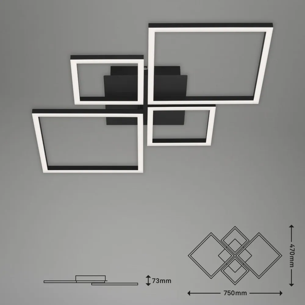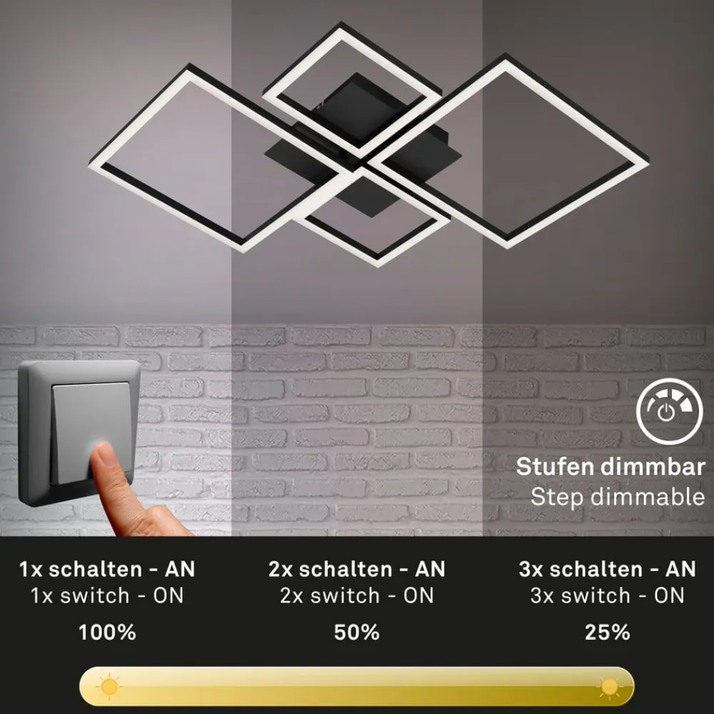 Frame LED-loftlampe, step dim, 4 lyskilder, sort