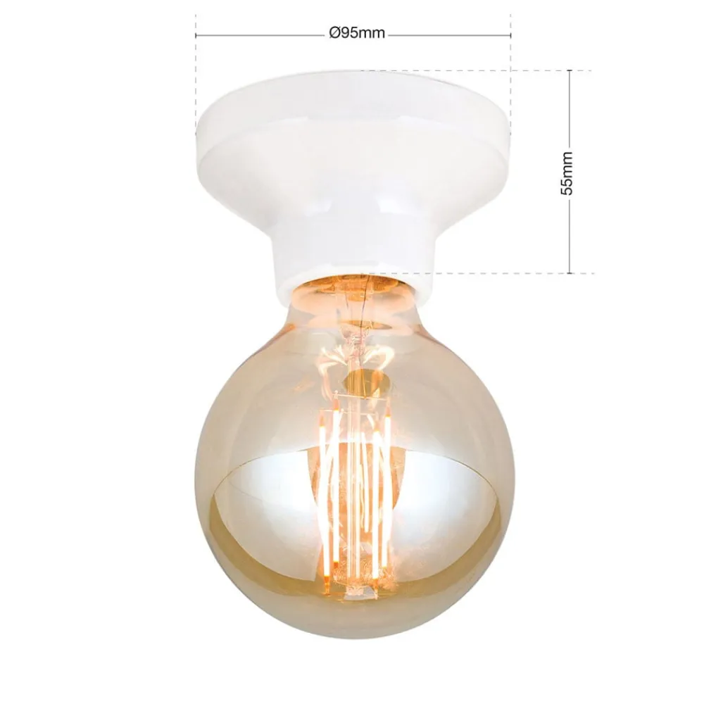 Frost rund loftslampe i keramik Frost-loftslampen kommer uden skærm, men med et umiskendeligt retrodesign. Med Frost er der fokus på et rundt loftsbeslag af glaseret keramik, som indeholder en E27-fatning. Alt efter hvilken lyskilde der anvendes, understreges det dekorative retro-look. Bemærk: Den retrofit globe-lyskilde, der er vist på produktfotoet, følger ikke med lampen. Men en dekorativ pære fra tilbehøret kan bestilles separat – eksternt dæmpbar