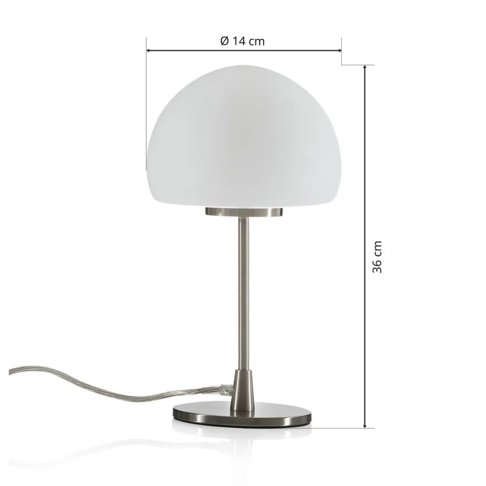 Gaia big kan næsten beskrives som en klassiker blandt bordlamper. Paraplyen holdes enkel og tidløs i form af en halvkugle. Lyset trænger igennem den opalfarvede glasskærm og skaber en hyggelig atmosfære. Den har en berøringsfunktion til praktisk tænding og slukning. Dette gør det velegnet til placering på et natbord, men kan også placeres på et vindueskarm som et alternativ. Deres krævende design harmonerer med enhver møblestil og ser høj kvalitet og stilfuld ud.