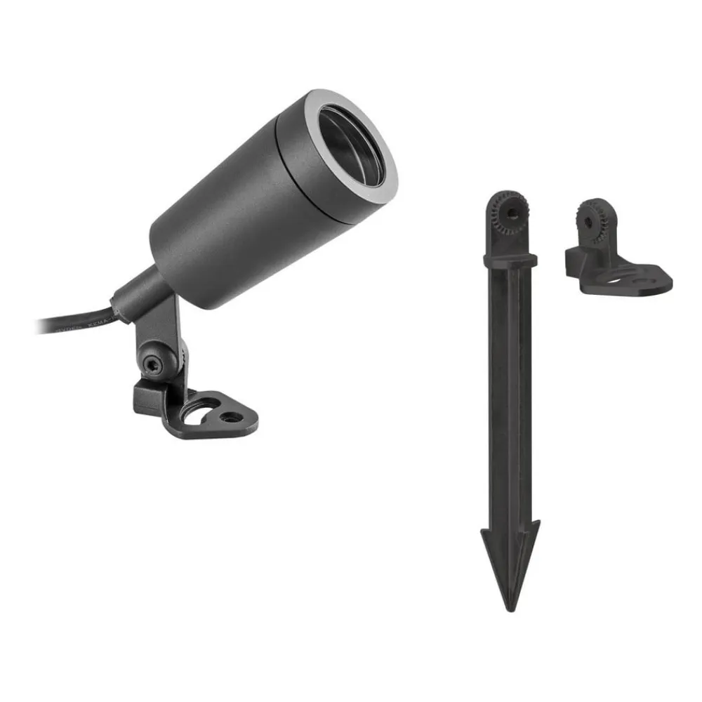 Lampe med jordspyd Gartenspot kan bruges mange forskellige steder i hele udendørsområdet. Den er udstyret med et stativ i stål, som gør det muligt at montere den på fast underlag. Hvis den skal placeres et sted, hvor underlaget består af jord eller græs, kan den medfølgende jordspyd bruges.