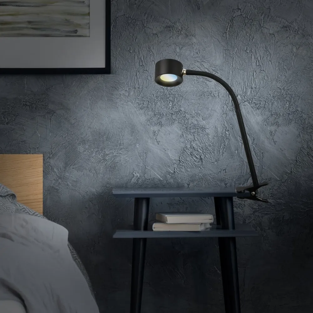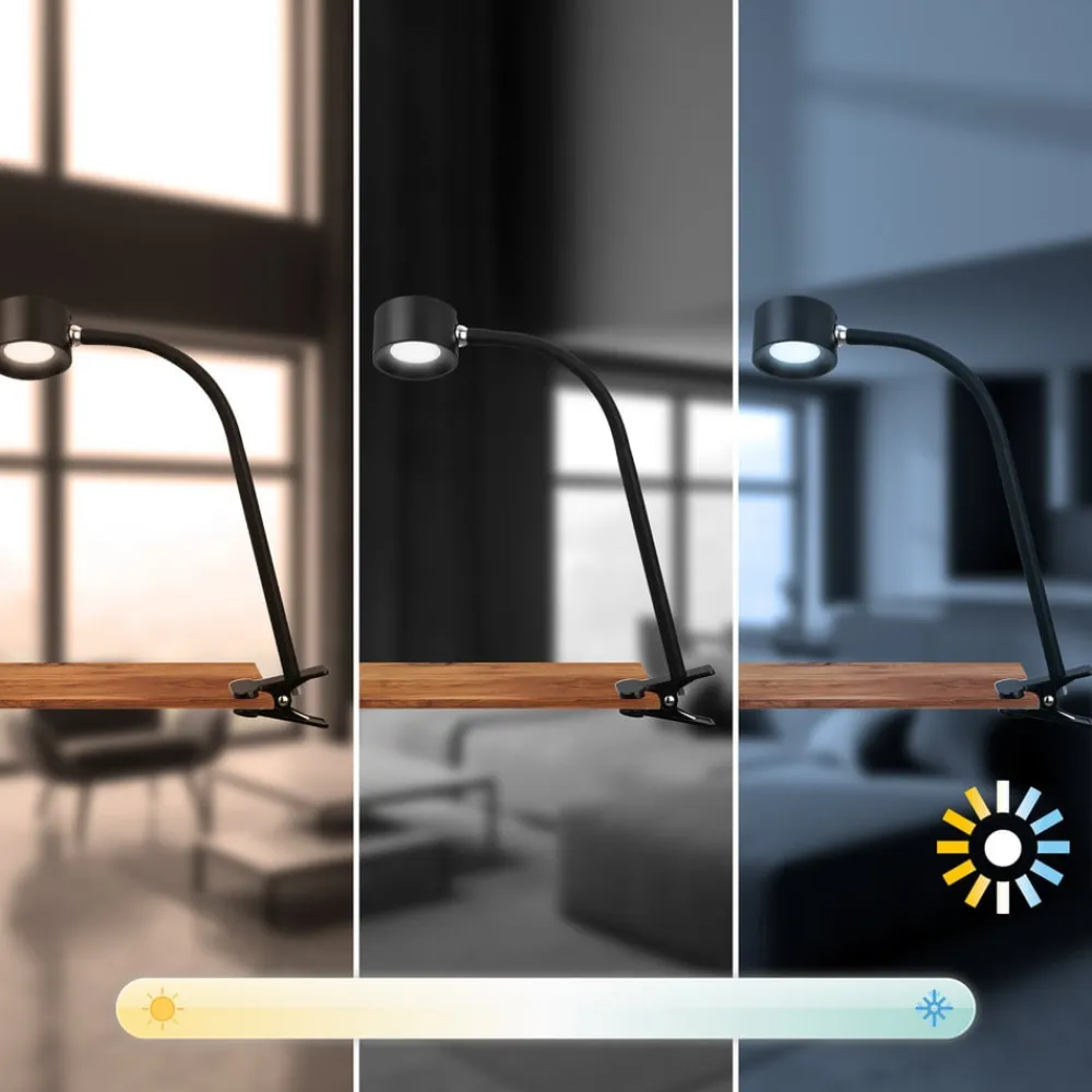 Genopladelig klemmelampe Tari, sort, CCT, touchdæmper, USB^Briloner Discount