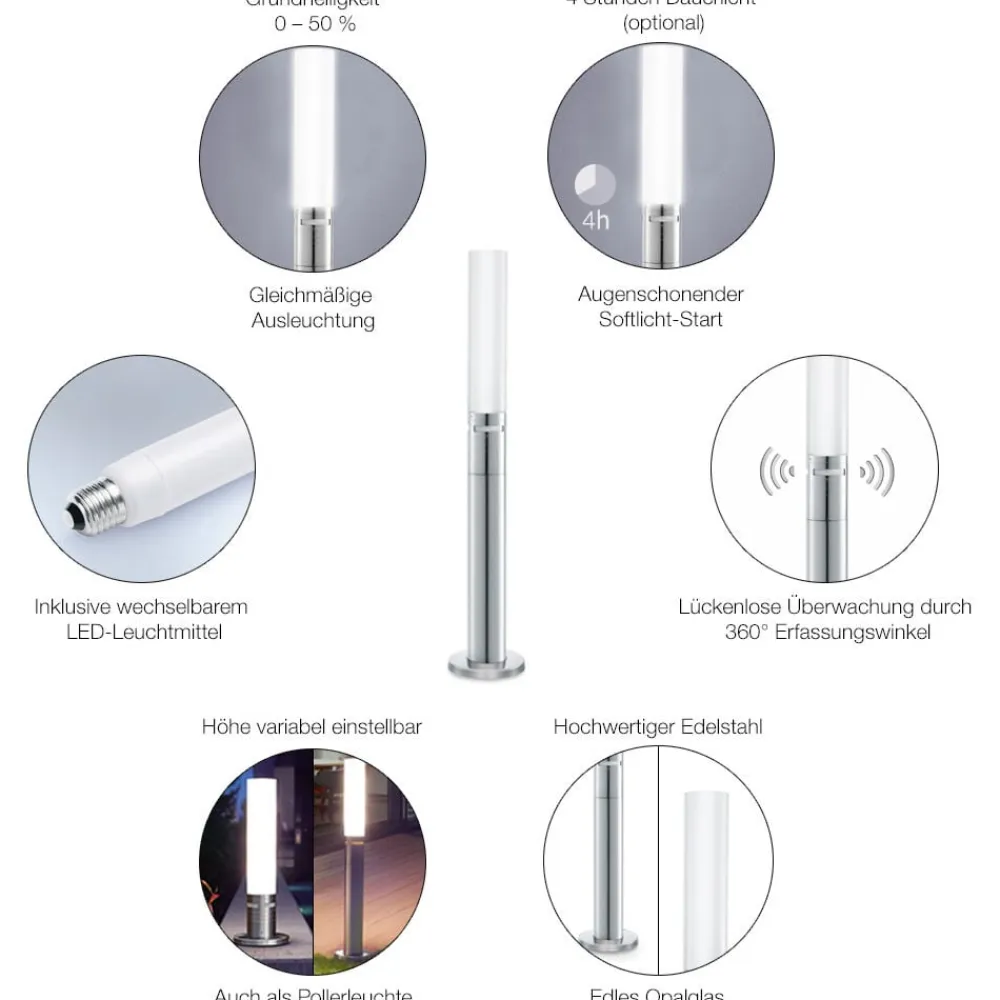 Den integrerede bløde lysstart er skånsom for øjnene og forlænger lyskildens levetid ved langsomt at øge effekten inden for et sekund, når den tændes. Elektronikken er lige så skånsom, når lyset er slukket. Den indbyggede infrarøde sensorteknologi er praktisk og økonomisk. Et kontinuerligt lys via netafbryderen kan være tændt i op til fire timer.