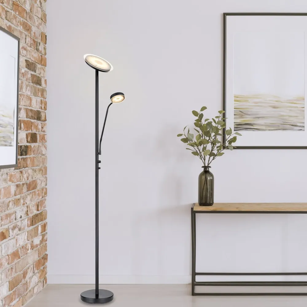 Smal LED gulvlampe Ernst af jern i stilfuld mat sort