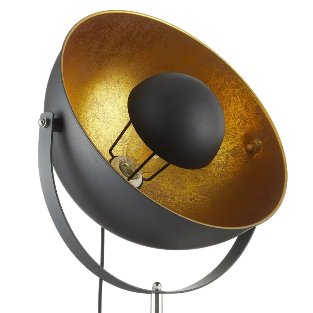 Tre ben og et kraftfuldt sort-gyldent udseende, det er gulvlampen Lenn