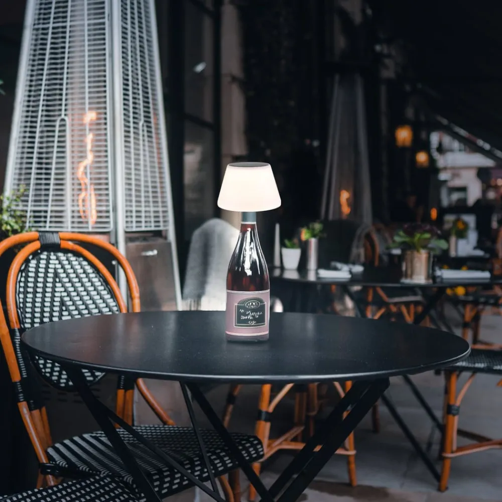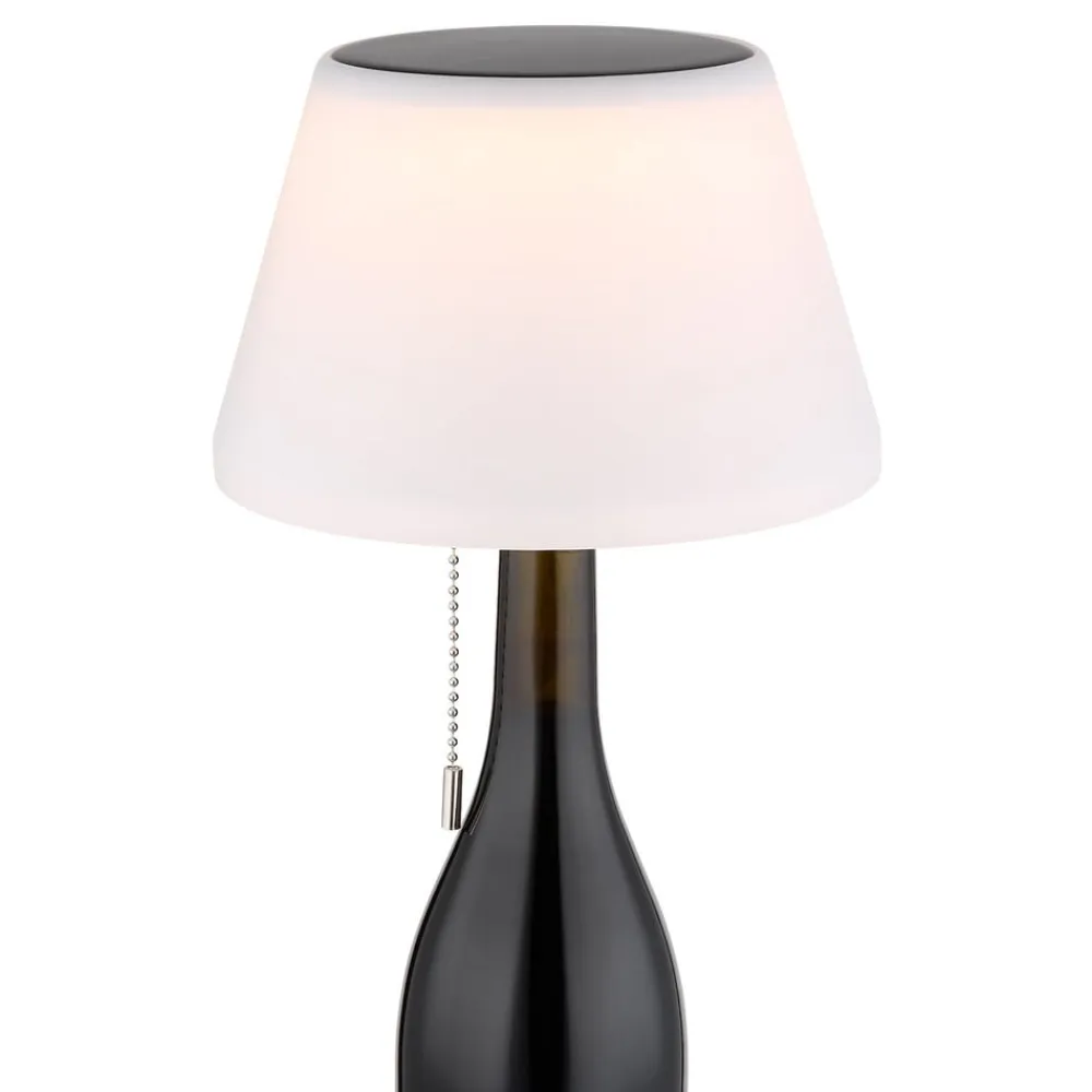LED-solcellelampe 36000 til fastgørelse på flasker Denne LED-solcellelampe af opalhvid plast med trækafbryder giver stemningsfuld belysning på ethvert bord. Lyset placeres på en flaske og er udstyret med varmhvide LED’er. Disse kan skiftes i tre tilstande: Mode 1 med 50 % lysstyrke (lyser også, når det er lyst), Mode 2 med 100 % lysstyrke (lyser også, når det er lyst) eller Mode 2 solar mode (lyser kun, når det er mørkt) – Med skydekontakt til at tænde og slukke – Også perfekt til udendørs cateringområder