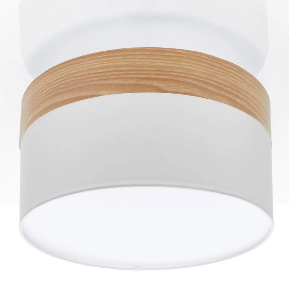 Loftlampe Libba med afstand – med cremefarvet skærm og træfiner