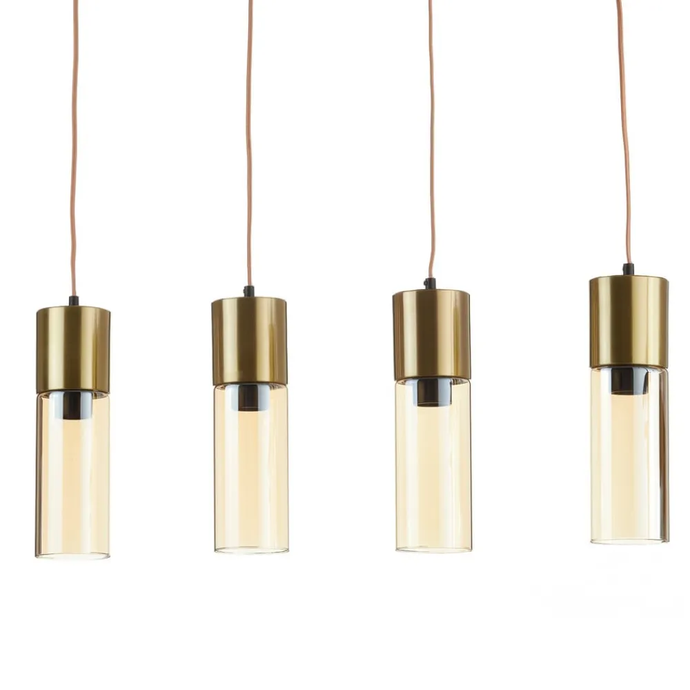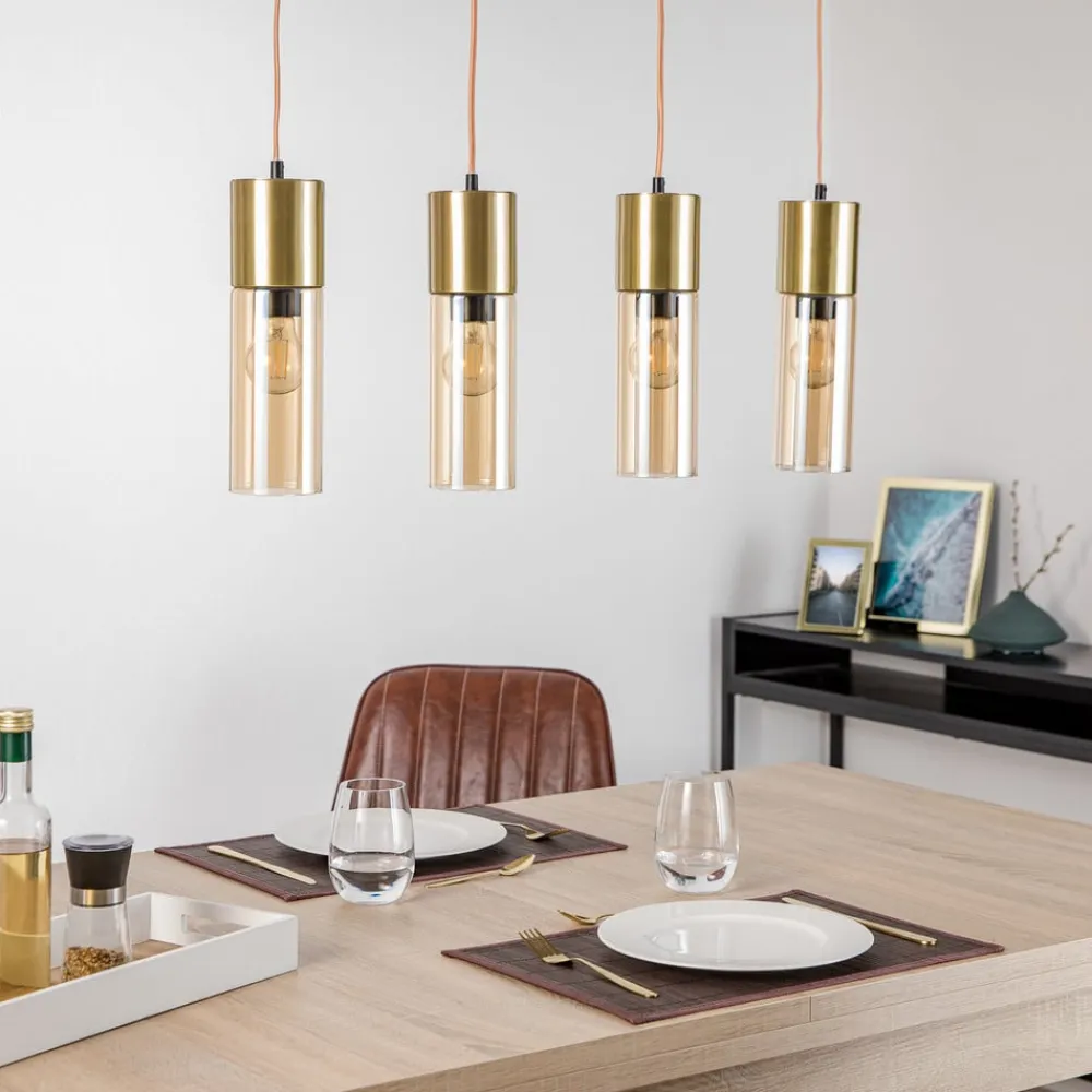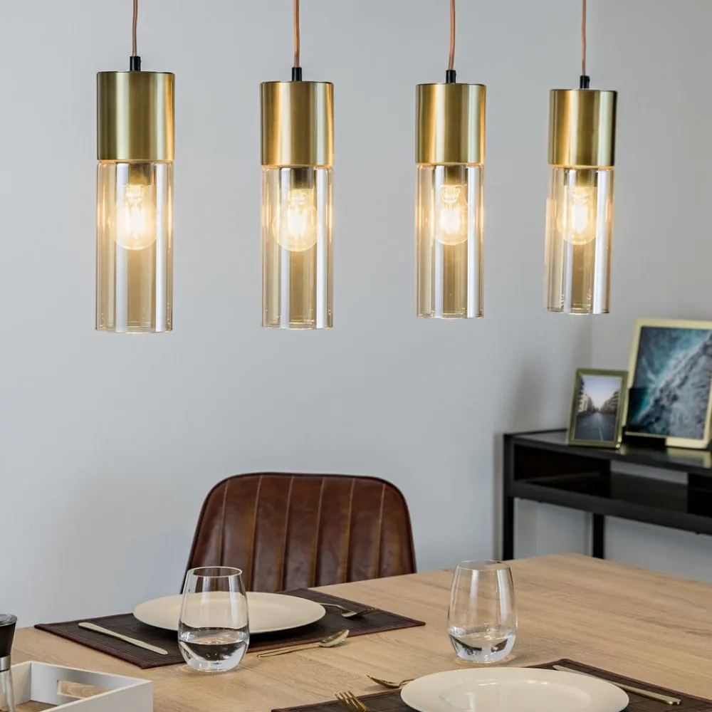 De fire lamper på pendellampen hænger ved siden af hinanden, og har en let cylindrisk form. Denne stilfulde lampe begejstrer ikke mindst med dens enkle, samt yderst moderne design. Denne smukke lampe er fremragende i et moderne indrettet køkken i lyse farver, eller over lange spiseborde i mørkt træ. Her anbefales det at anvende filamentpærer eller rustikke lyspærer som lyskilder. Dermed er der garanteret hyggelige timer med venner eller familie, som de vil huske i lang tid fremover.