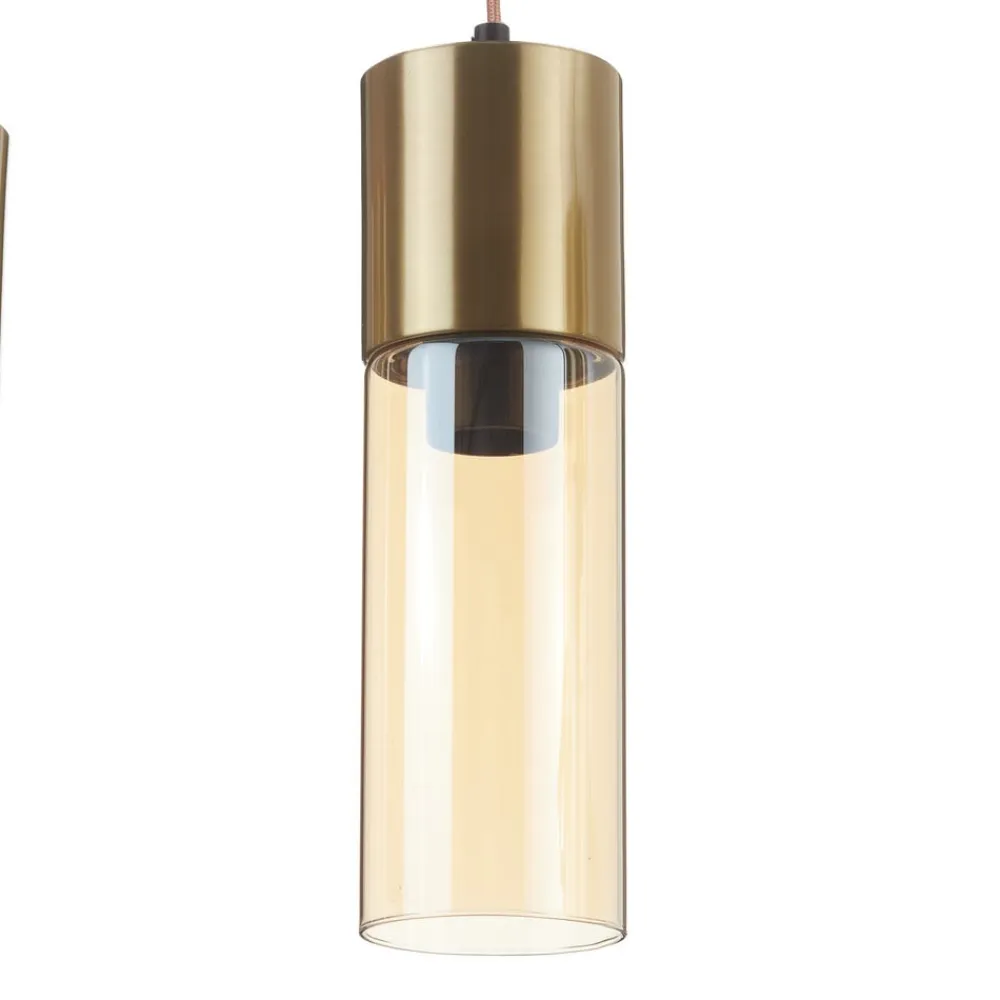 Et unikt design for ethvert rum: Med pendellampen Annika skabes der et stilfuldt lyskoncept i hjemmet. Designelementet begejstrer med fatninger i mat messing, farverigt glas og brune tekstilkabler. Enkel elegance og klassisk design møder her hinanden, og harmonerer perfekt sammen.