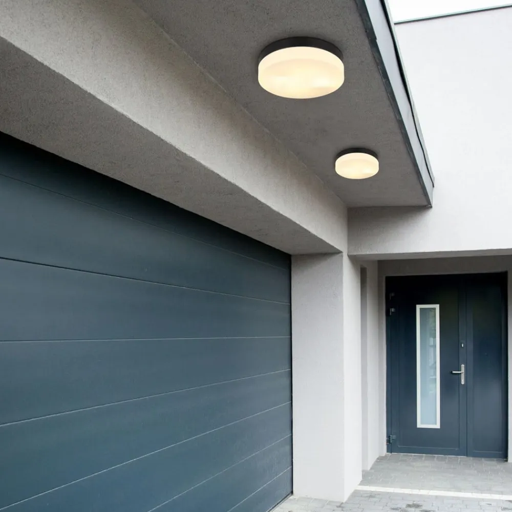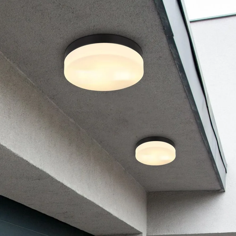 Udendørs loftslampe Vranos, mat sort, Ø 24 cm, aluminium