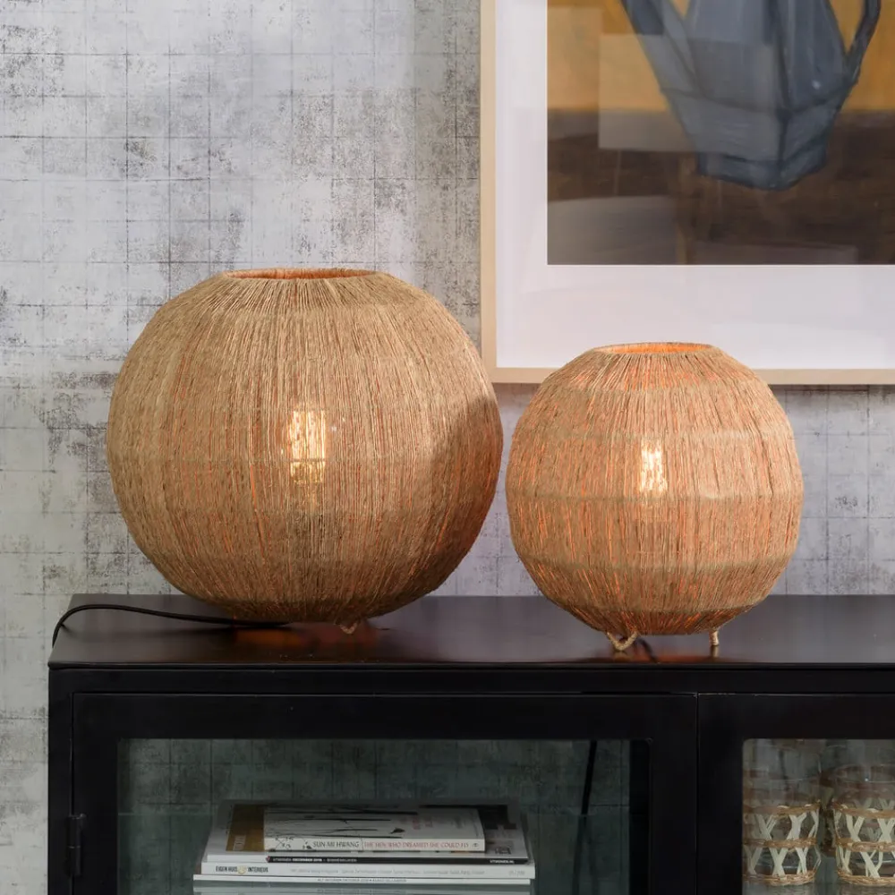 Iguazu er de største og mest kendte vandfald i Sydamerika, som ligger på grænsen mellem Brasilien og Argentina. Den runde, kugleformede skærm på Iguazu-bordlampen, som er opkaldt efter vandfaldene, er lige så naturlig og flydende som vandløbet. Det er fremstillet af jute og består af mange fine tråde, som er meget robuste og rivfaste – en egenskab, som denne naturfiber har med sig. Det bæredygtige materiale jute dyrkes langt mindre intensivt end bomuld og er meget lidt krævende, hvilket betyder, at man kan undlade at gøde.