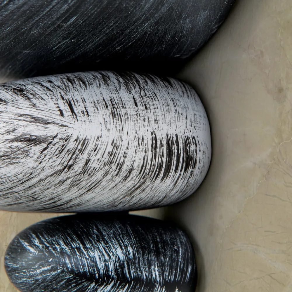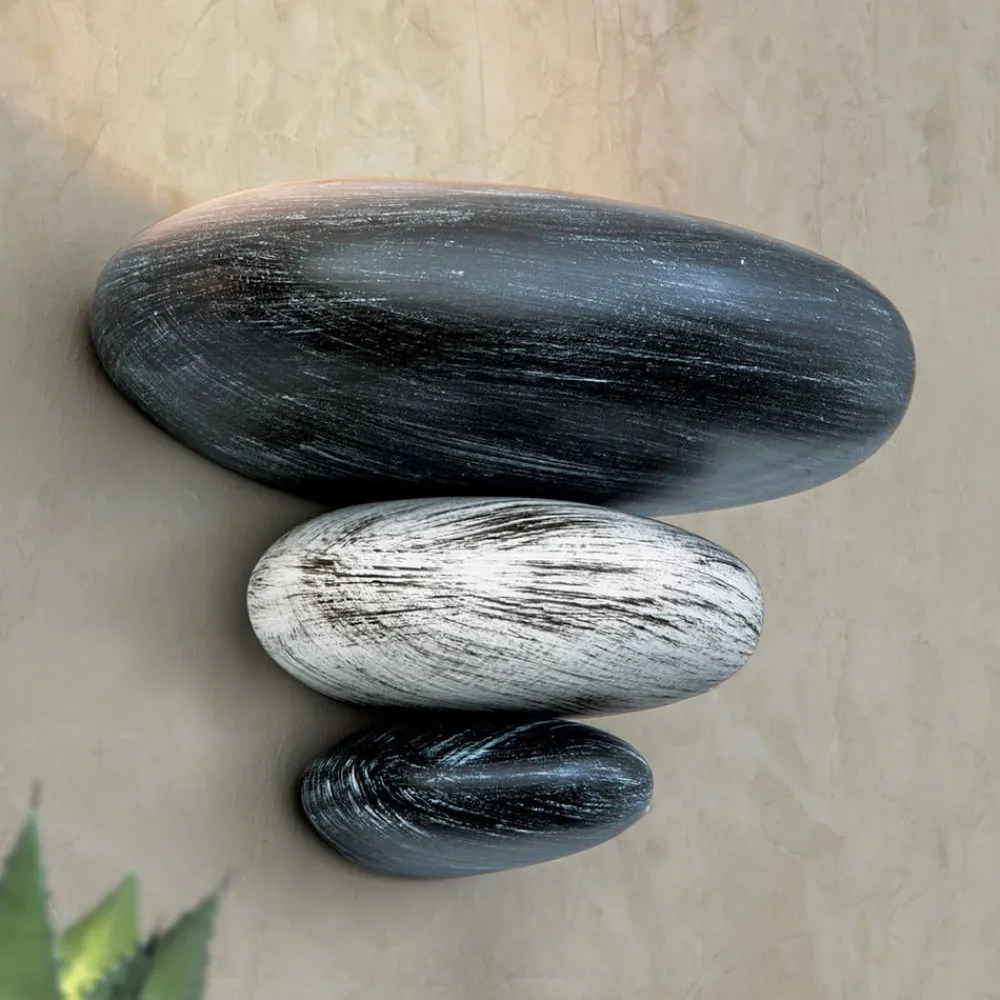 Udførelsen af denne lampe er sket ved at designeren har lagt sten på sten. Først en lille keramiksten, så to større sten osv. derop ad. Det naturtro design gør lampen utrolig dekorativ. Lyset stråler op i loftet, og er særlig behageligt og stemningsfuldt.