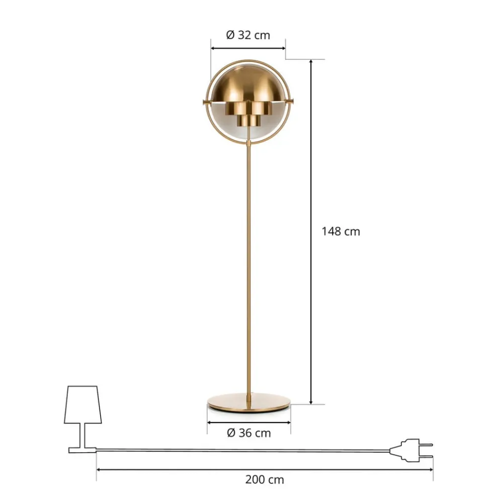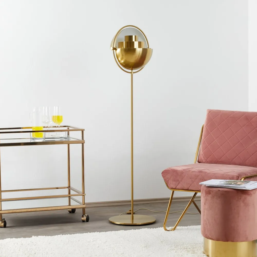 Multi-Lite designergulvlampe: alsidig, justerbar ekstra lyskilde Det særlige ved denne gulvlampe fra Gubi er lampeskærmens design. De forskellige metalelementer – to kvartkugler og to cylindre i midten – kan drejes rundt om hinanden, så lyset fra den anvendte lyskilde enten skinner nedad, indirekte opad i omgivelserne eller asymmetrisk. På den måde kan der skabes en hyggelig atmosfære efter ønske, for eksempel i opholdsstuens siddeområde, som altid kan tilpasses de respektive krav. Louis Weisdorf er den kreative hjerne bag designet af Multi-Lite. Armaturet illustrerer den alsidighed, som den danske designer har tilegnet sig i løbet af sin karriere inden for en lang række områder. Efter afgangseksamen fra Kunstakademiet i København i 1954 arbejdede Weisdorf i byggebranchen og fra 1961-1971 i Tivoli i København, hvor han var chefassistent for chefarkitekten. I slutningen af 1960’erne grundlagde han sin egen tegnestue i København. Stilmæssigt er Multi-Lite gulvlampen lige så alsidig som sin skaber: Takket være sin tidløse æstetik matcher Multi-Lite mange indretningsstile.