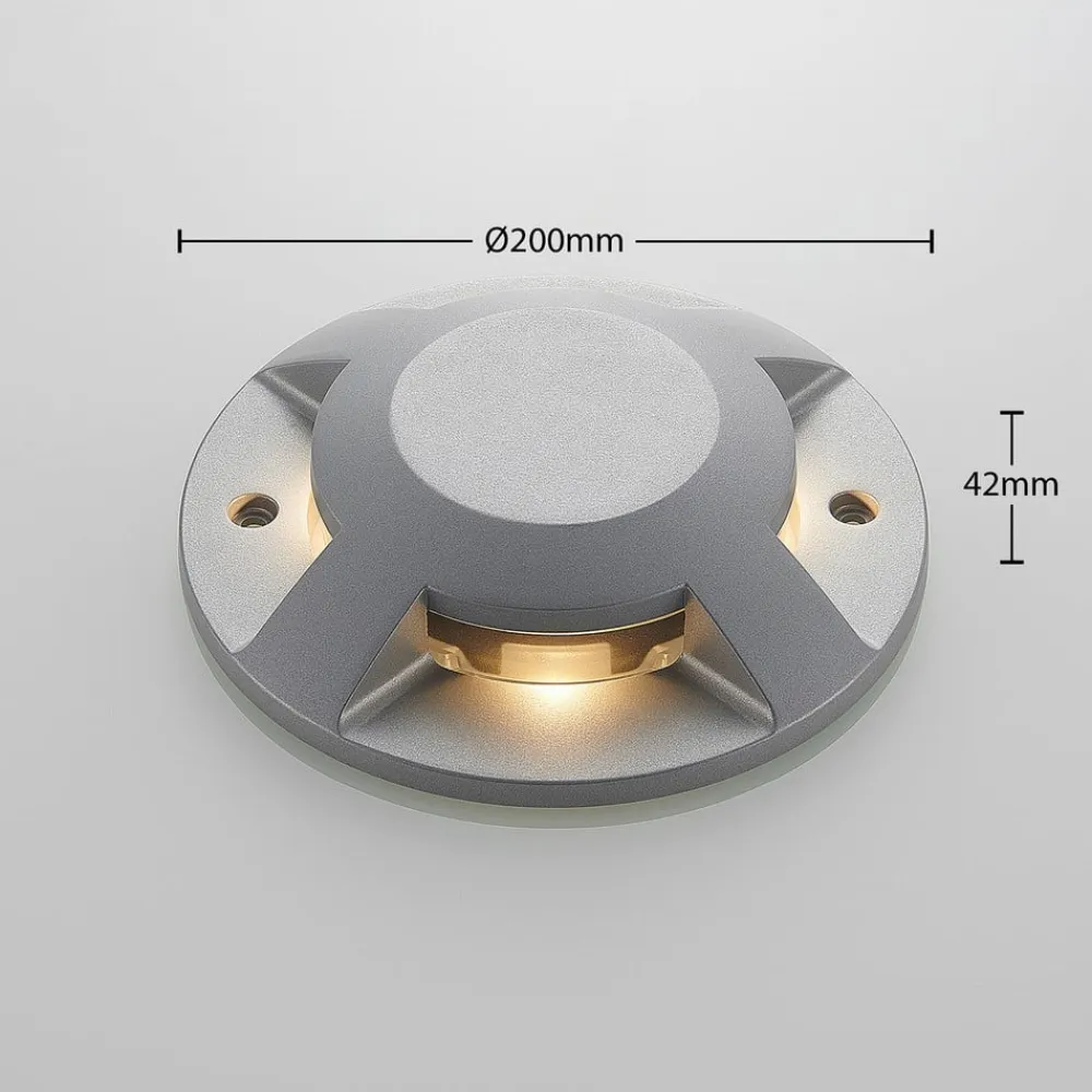 Rund gulv-spotlight med LED Jeffrey med lysudgang til fire sider, kapslingsgrad IP67