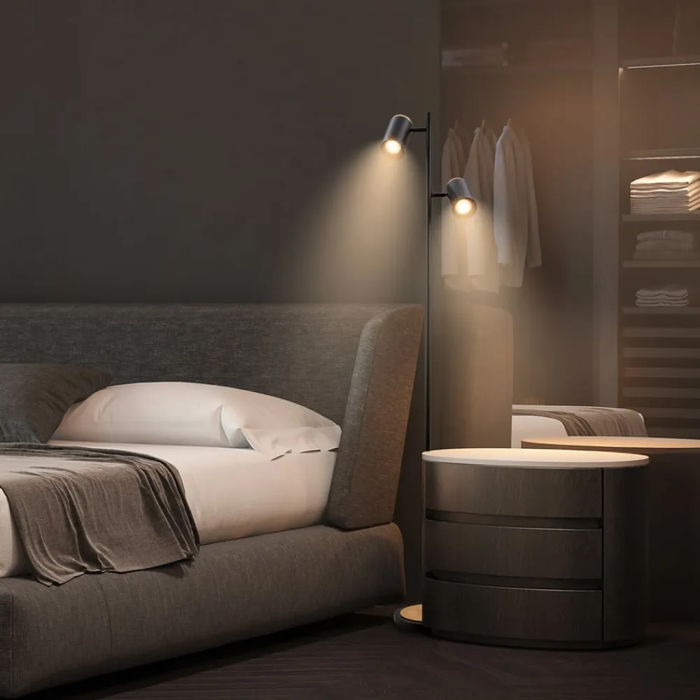 Med sine klare linjer og harmoniske farver er gulvlampen Duta med 2 lyskilder et blikfang i ethvert rum. Den giver ikke kun funktionelt lys, men sætter også dekorative accenter, der kan have stor indflydelse på rummets atmosfære. Ideel til dem, der værdsætter æstetik og kvalitet uden at gå på kompromis med funktionaliteten. Udstyret med afbryder på kablet.