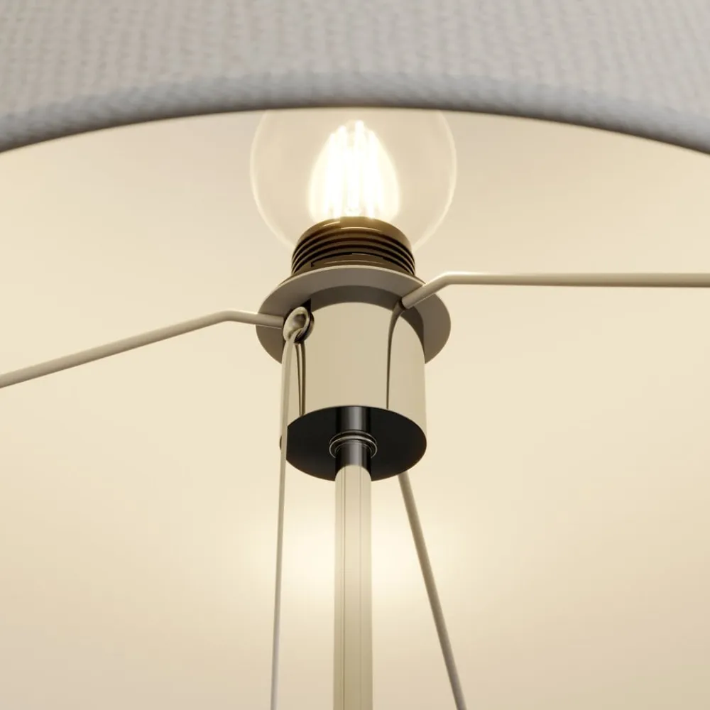 Pordis tekstilgulvlampe med hvid skærm og forkromet, højdejusterbart stel Denne gulvlampe præsenterer sig i en moderne form med et diskret look og er den ideelle tilføjelse til opholds- og soveområder. Skærmen bliver lidt smallere mod toppen og har en hvid overflade, der skaber en smuk, hyggelig glød. Stellet har et teleskopelement, så højden kan justeres efter behov (129,5 cm – 155 cm). Lampens base og stellet er også udført i skinnende krom, som sammen med den hvide skærm skaber et harmonisk look med en let kontrast.