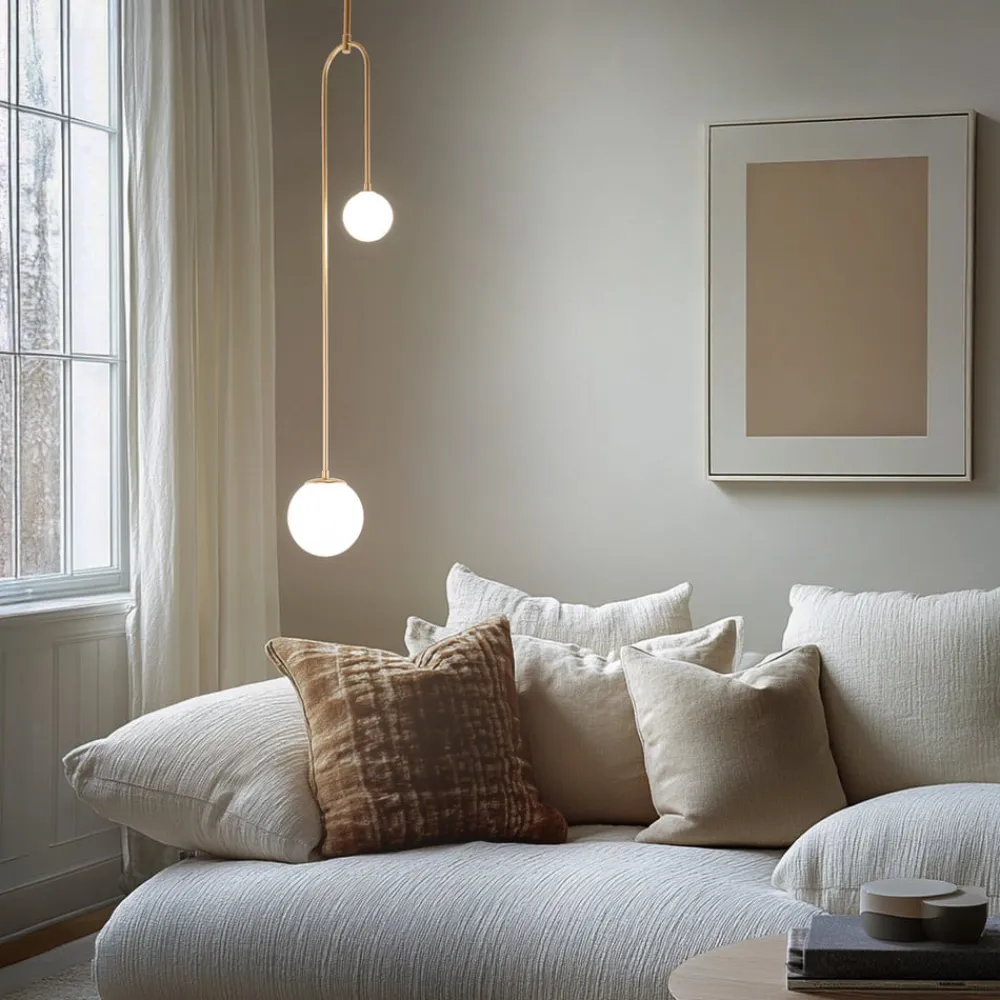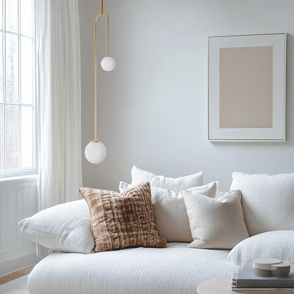 Hængelampe AV-1897-2BSA: Eleganse og alsidighed i guld og opal hvid
