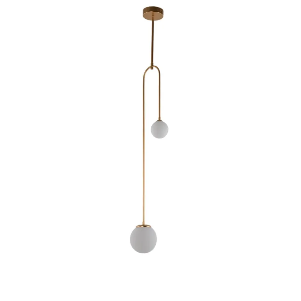 Hængelampen AV-1897-2BSA kombinerer stilfulde materialer og et elegant design, der giver ethvert rum et særligt præg. Denne lampe er fremstillet af højkvalitets jern og glas og imponerer med sin guld- og opalhvide farve, der passer til både klassiske og moderne indretningsstilarter. De to glaskugler sikrer en jævn lysfordeling og skaber en indbydende atmosfære.