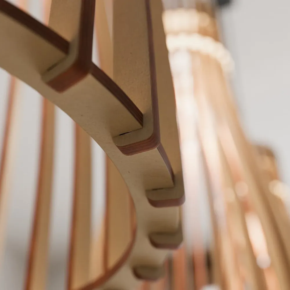Et særligt kendetegn ved denne lampe er muligheden for dæmpning via en ekstern dæmper, hvilket giver mulighed for fleksibel justering af lysintensiteten. Bemærk, at skærmens træelementer ikke er formonteret, men at der medfølger en detaljeret vejledning og det nødvendige monteringsmateriale. Dette gennemtænkte design gør hængelampen Bottle til et ideelt valg for alle, der værdsætter et harmonisk og samtidig funktionelt belysningskoncept.