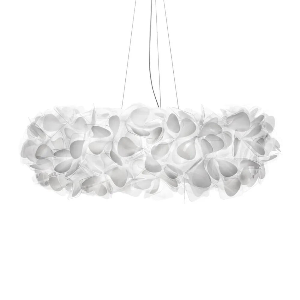 Fascinerende Clizia Mama Non Mama hængelampe Clizia Mama Non Mama hængelampen er et udtryk for ren skønhed, hvad angår udseende og lysudsendelse. Som kronbladene på en blomst skaber utallige elementer, der er forbundet manuelt med Cristalflex®-forbindelser, en skærm, der ligner en glødende buket og skaber en uforligneligt smuk lysatmosfære. En hængelampe designet af Adriano Rachele og produceret af den italienske belysningsproducent Slamp, grundlagt i 1994 af Roberto Ziliani, som er ideel til stemningsfuld belysning i stuer og soveværelser. Cristalflex® – lige så gennemsigtigt som krystal, men lige så let, fleksibelt og brudsikkert som polykarbonat – er et materiale, der er ideelt til at producere lette belysningskreationer til både hjemmet og hotelbranchen. Adriano Rachele, den kreative hjerne bag designet af Clizia, har arbejdet i forsknings- og udviklingsafdelingen siden 2007 og er dedikeret til opgaven med at skabe særlige belysningsobjekter, der efter hans mening udstråler poesi og følelser. Slamp-armaturer er ikke mindst kendetegnet ved den særlige lyseffekt, der skabes af de specialudviklede materialer. Takket være Slamps eksklusive magnetsystem kan hvert armatur monteres hurtigt og nemt.