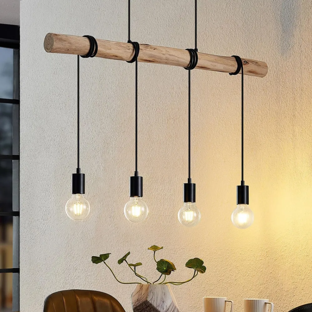 hængelampe Ferris, 4 lyskilder, 90 cm, træ, E27^Lindby Outlet