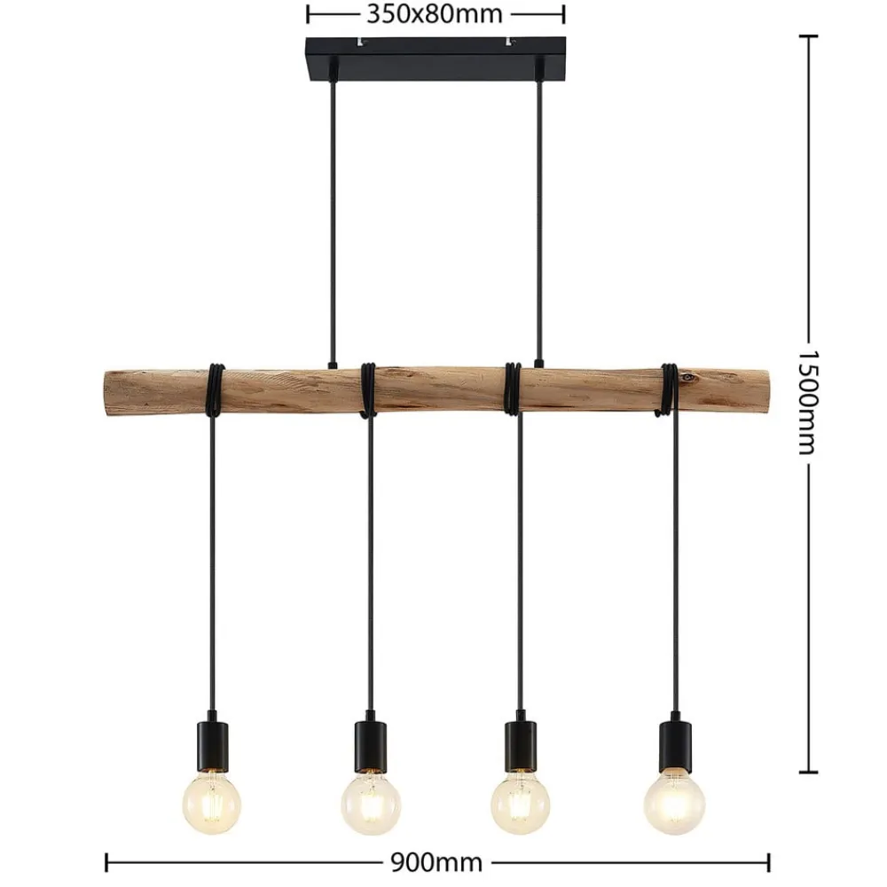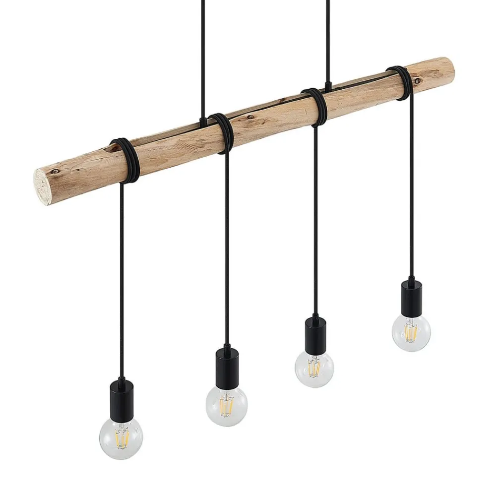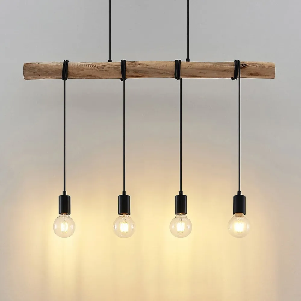 Lindby hængelampe Ferris, 4 lyskilder, 90 cm, træ, E27