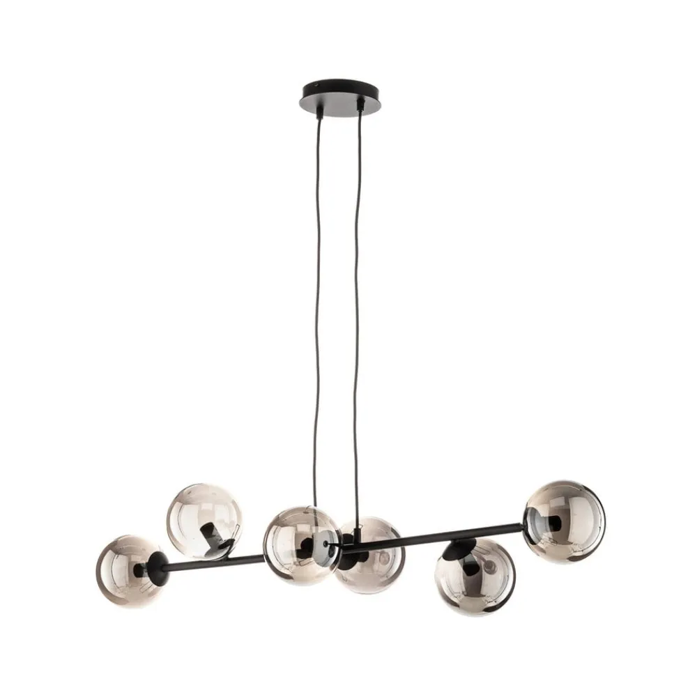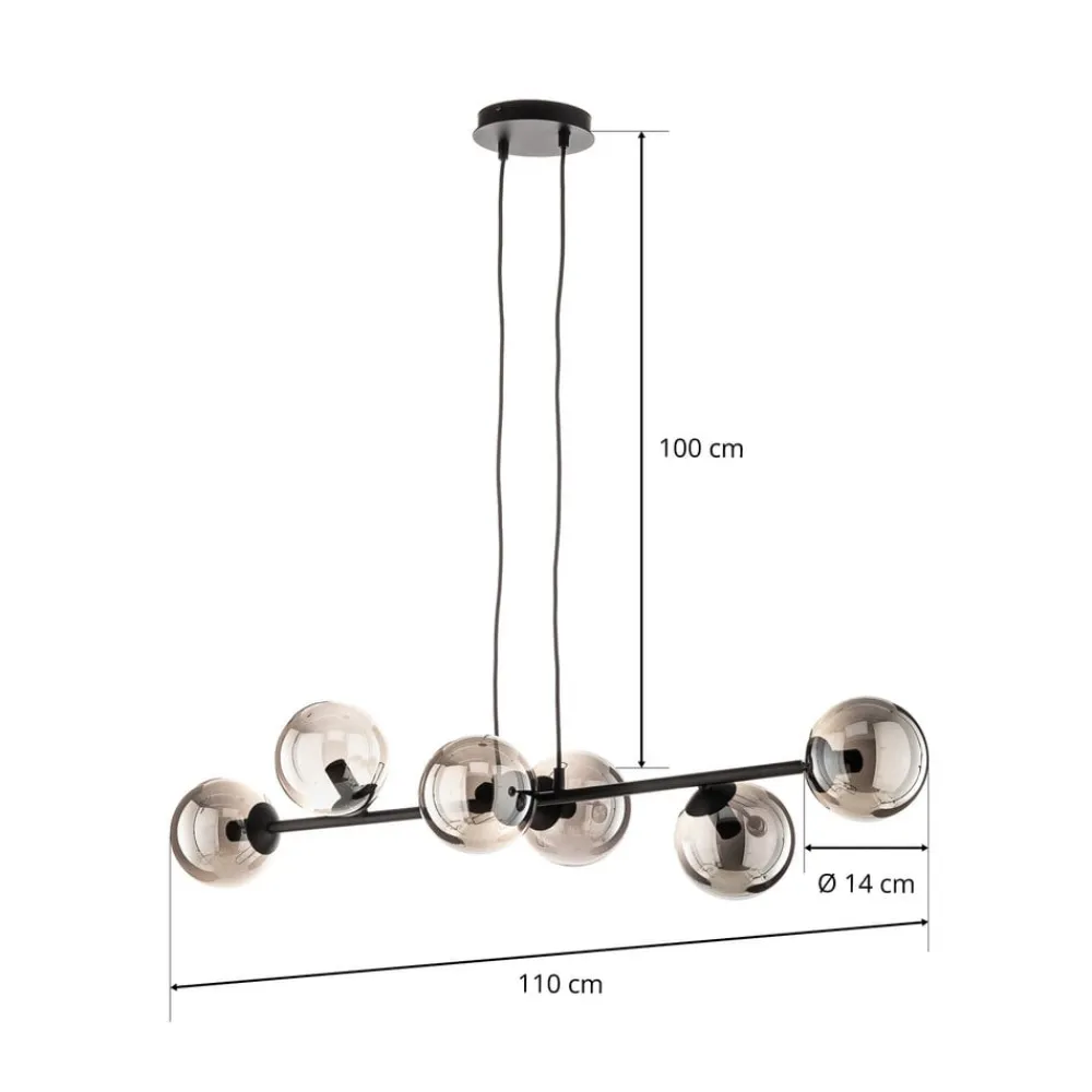 Hængelampen Glassy kombinerer moderne design med høj kvalitet og er fremstillet af pulverlakeret stål og glas. Denne lampe med 6 lyskilder i farverne sort og grafit sætter stilfulde accenter i ethvert rum. Den er særligt velegnet til stuen, køkkenet og spisestuen og tilbyder en harmonisk belysning, der er både funktionel og æstetisk tiltalende.