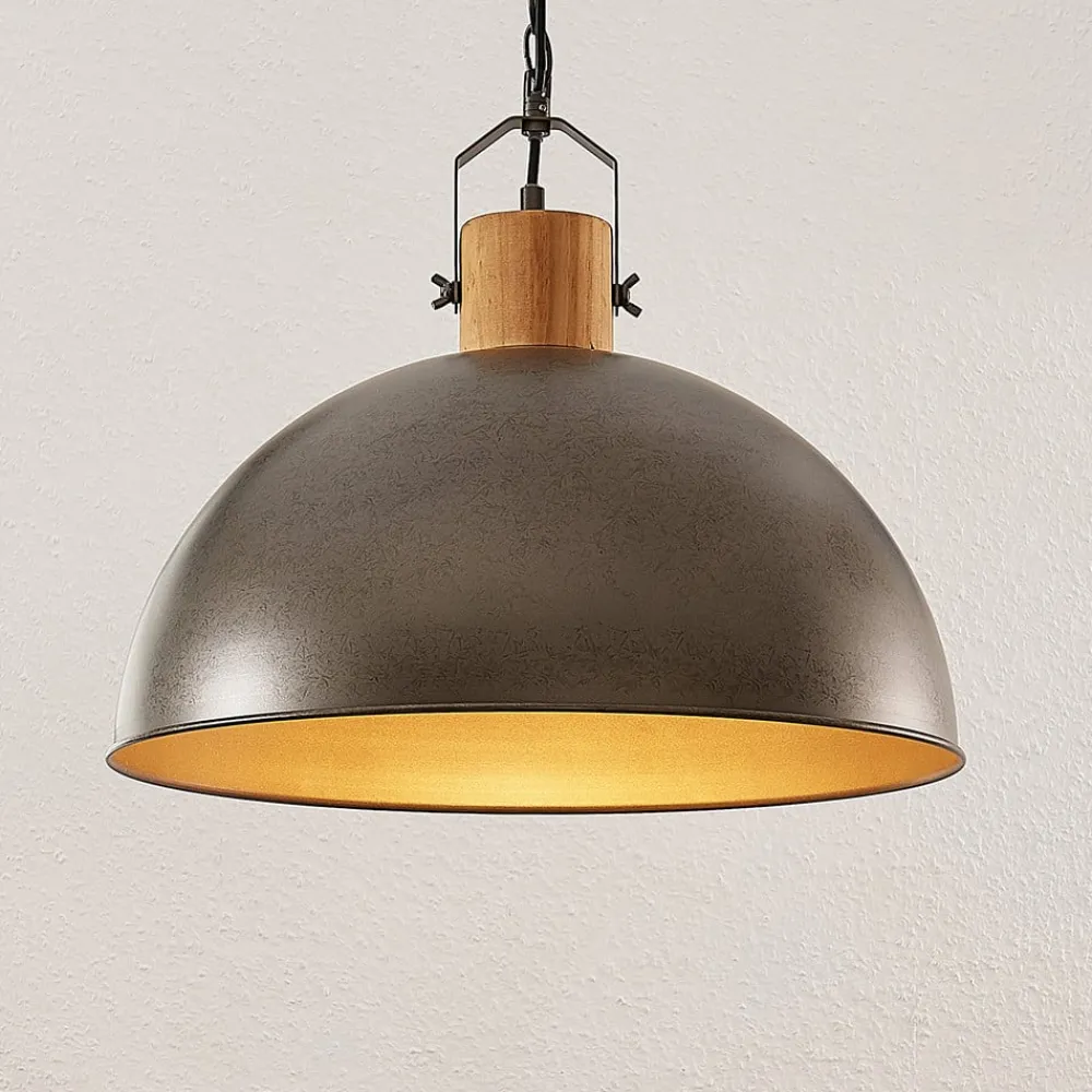 Lindby Pendellamper>hængelampe Holgar, grå, 3 lyskilder, træ, metal, E27