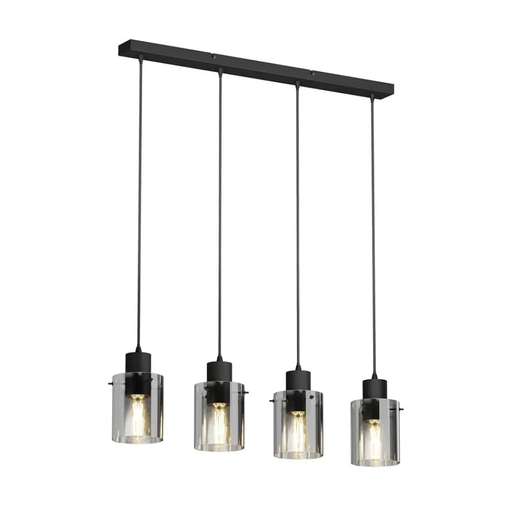 hængelampe Kourtney, 4 lyskilder, sort/grå, glas, E27^Lindby Sale