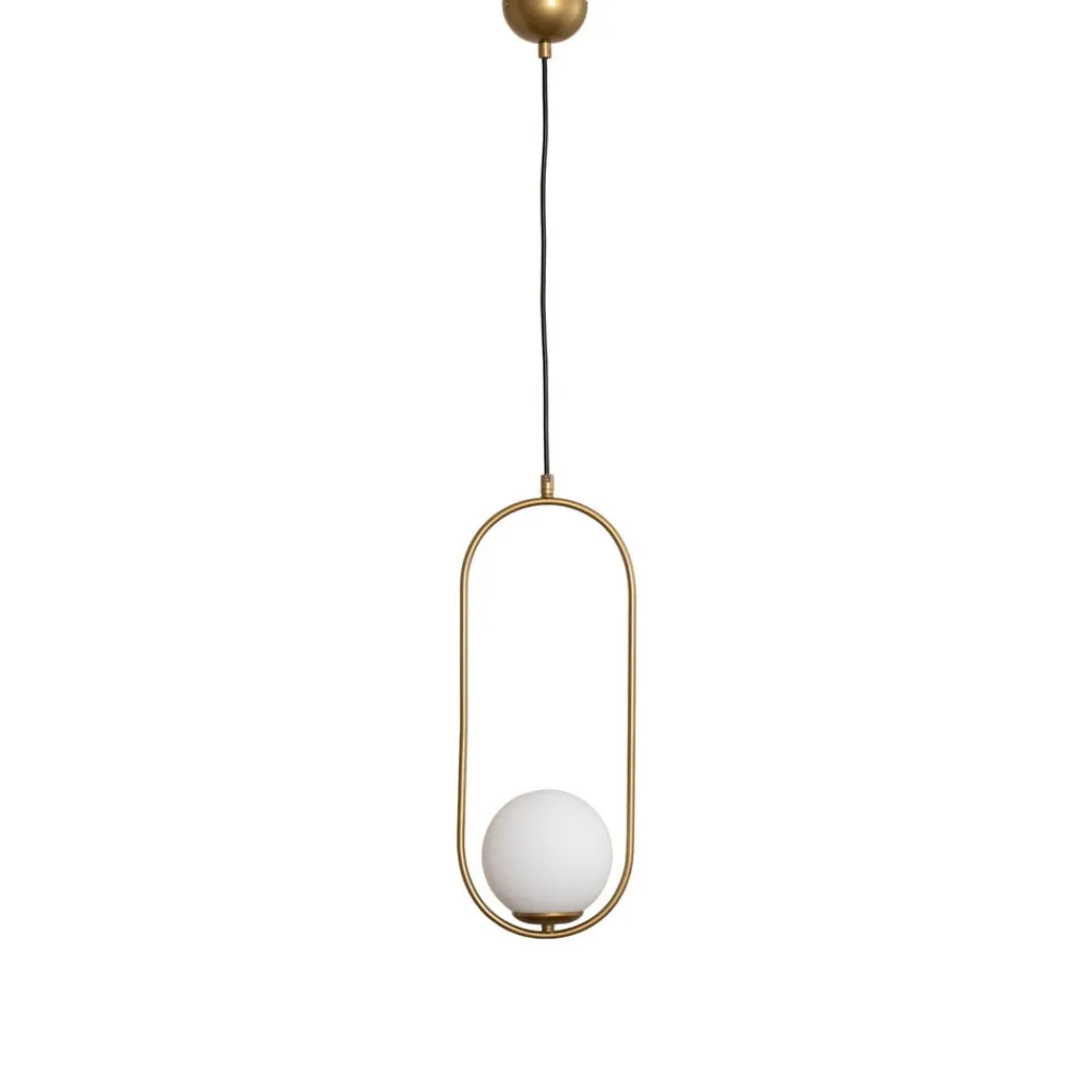 Hængelampe Mudoni, guld/hvid, glas, metal, E27