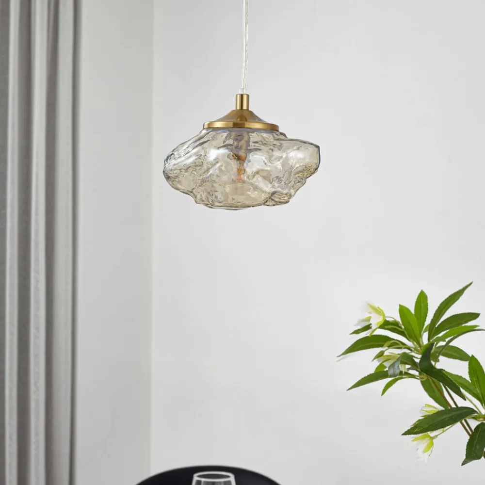 hængelampe Piatra, rav/messing, glas, Ø 16 cm, G9^Lindby New