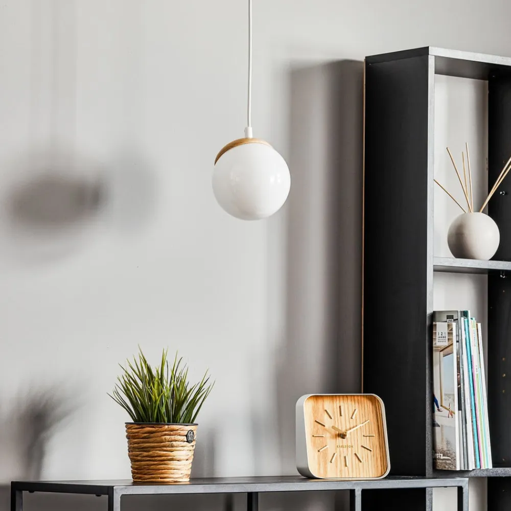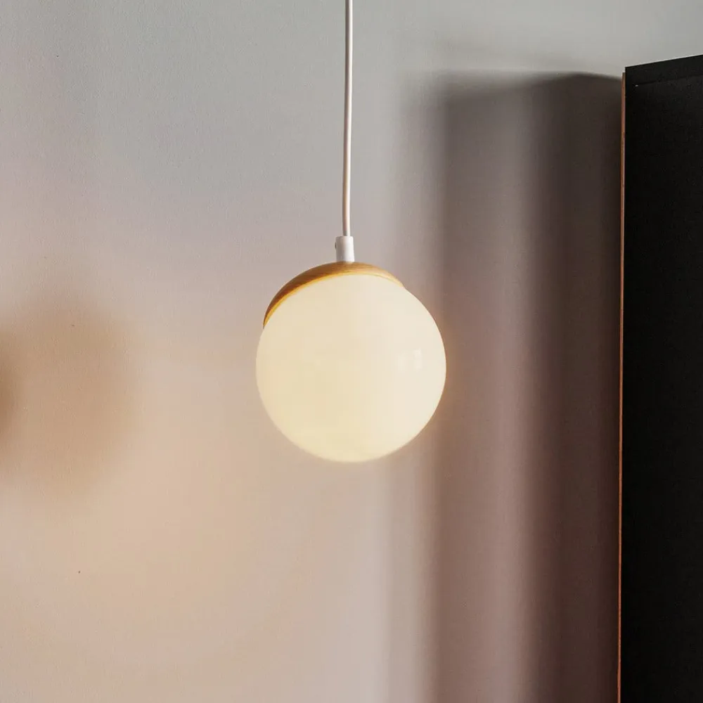 Hængelampen Sfera 1 lyskilde kombinerer moderne design med naturlige materialer og skaber dermed et fascinerende lysspil i ethvert rum. Denne lampe er fremstillet af glas, træ og stål og tilbyder en harmonisk kombination af opale, lyse træfarver og hvide nuancer. Muligheden for dæmpning via en ekstern dæmper gør det muligt at tilpasse lysintensiteten fleksibelt for at skabe den ønskede atmosfære.