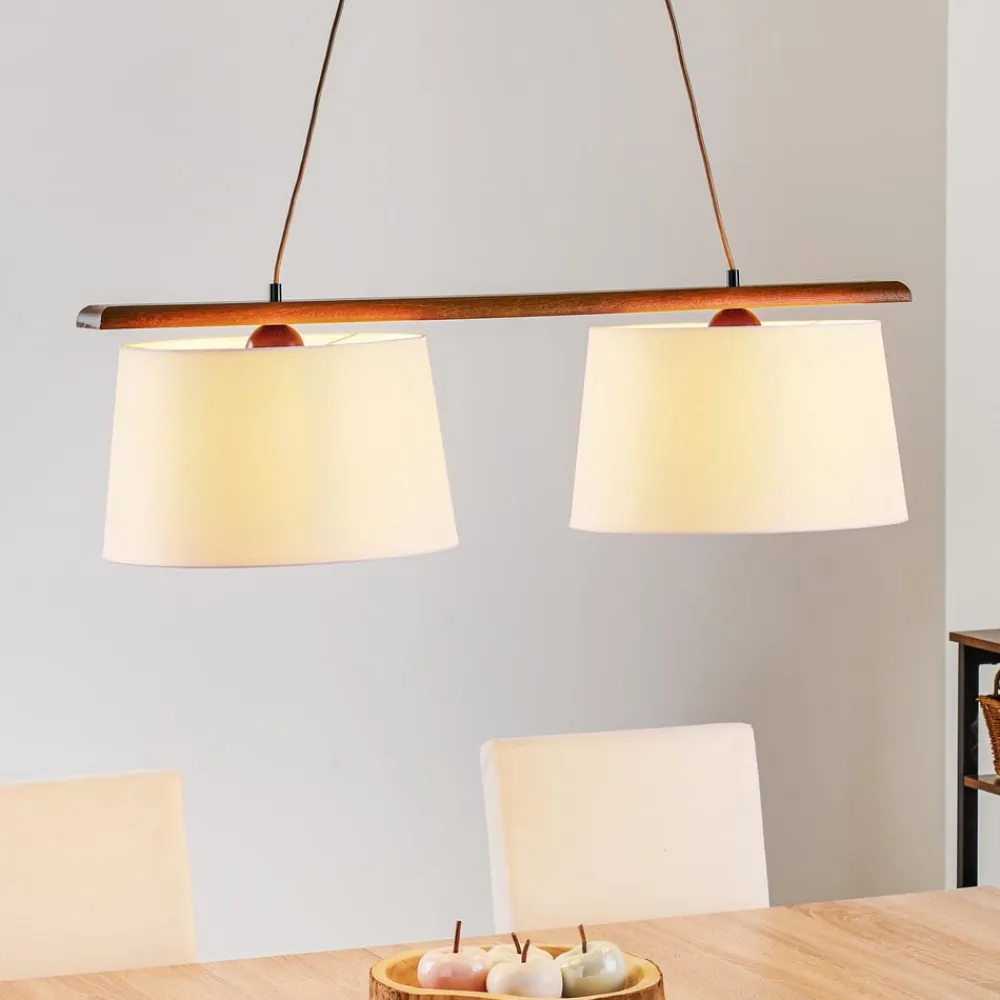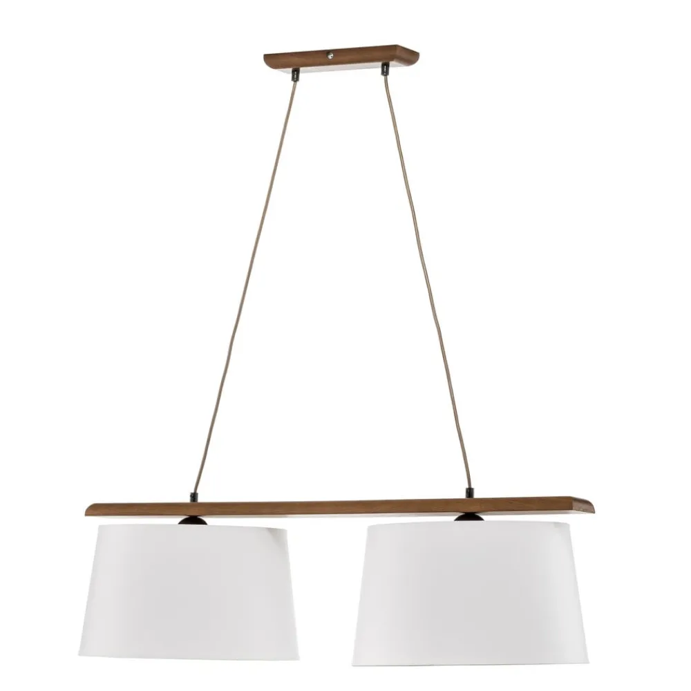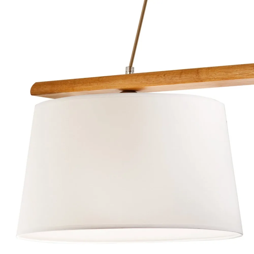 Hængelampen Sweden med 2 lyskilder forener skandinavisk enkelhed med rustik charme og bliver dermed et stilfuldt highlight i enhver bolig. Den er fremstillet af træ og stof i høj kvalitet og passer harmonisk ind i både moderne og landlige indretningsstilarter. Kombinationen af rustikt egetræ og hvid giver lampen en tidløs æstetik, der sætter accenter i både stuen, køkkenet og spisestuen.