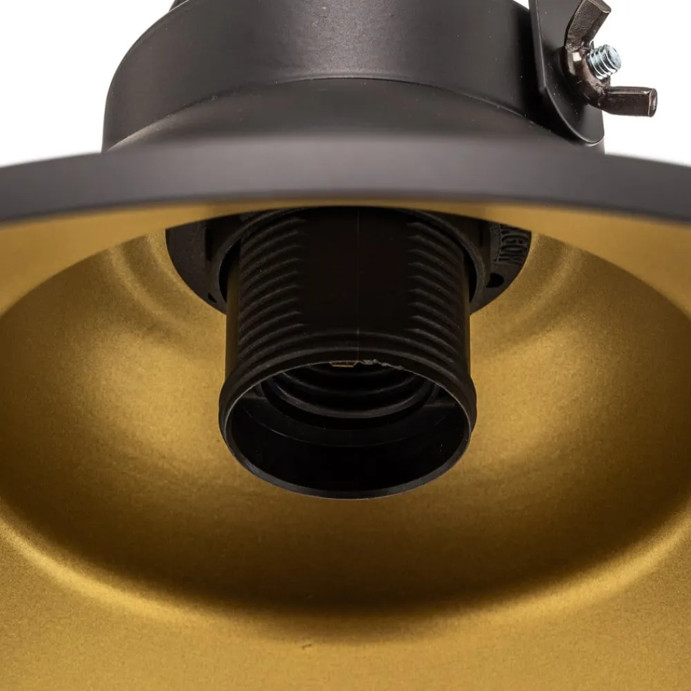 Hængelampen Taft kombinerer industrielt design med en elegant farve i sort og guld. Fremstillet af rustfrit stål og plast i høj kvalitet, tilbyder denne lampe ikke kun en robust konstruktion, men også en æstetisk berigelse til ethvert rum. Uanset om det er i stuen, i køkkenet, i entreen eller i spisestuen – hængelampen Taft sætter stilfulde accenter og skaber en fascinerende atmosfære.