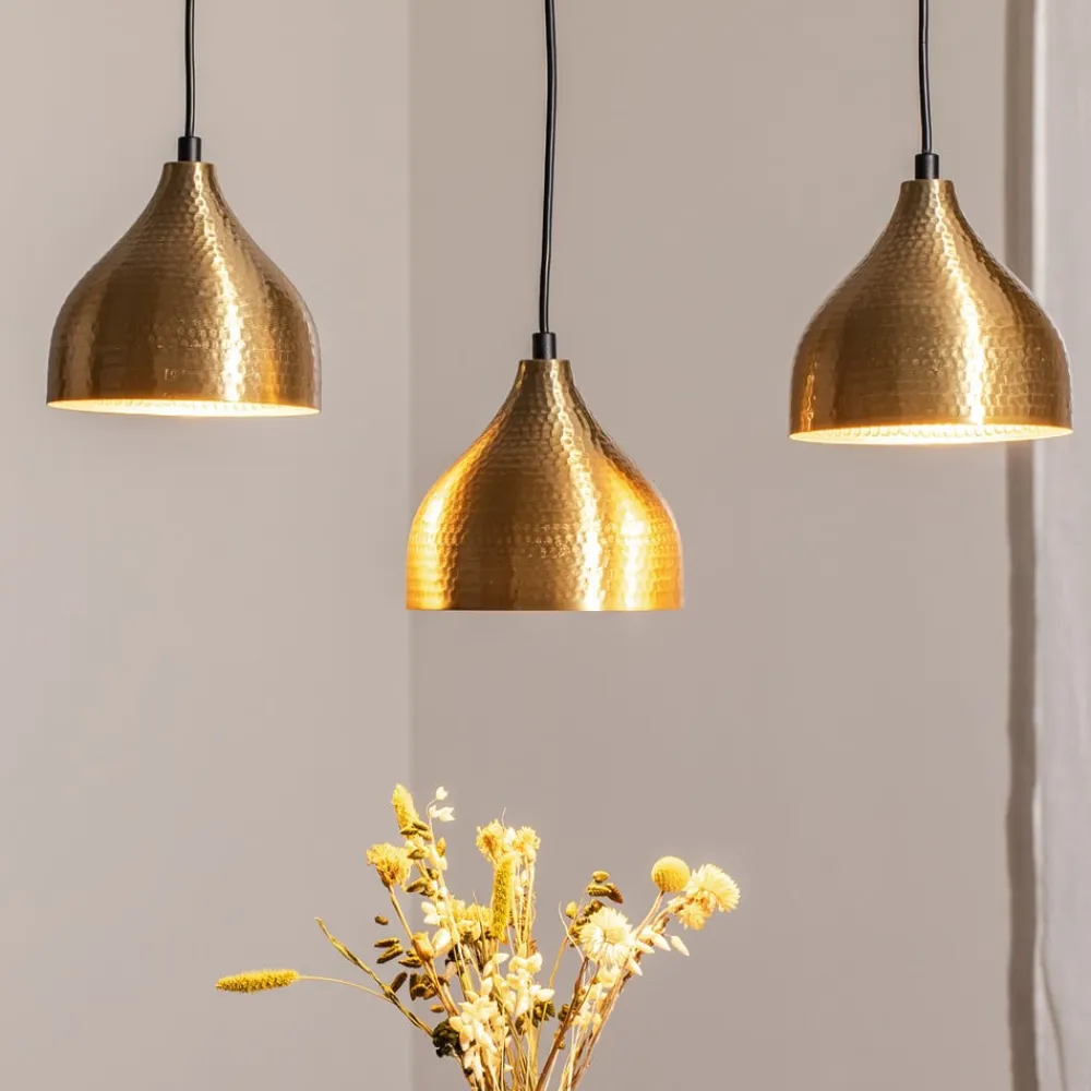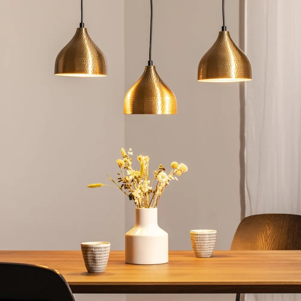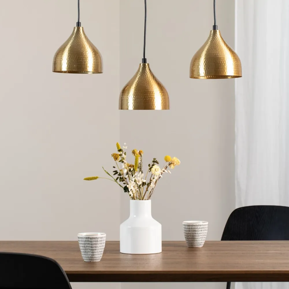 Et særligt træk ved denne lampe er muligheden for at dæmpe lyset med en ekstern dæmper, hvilket giver mulighed for fleksibel justering af lysintensiteten. Hængelampen Tattoo 6214 er fremstillet i Europa og står for kvalitet og håndværk. Den gyldne farve giver rummet en varm og indbydende atmosfære, mens det robuste metalmateriale garanterer lang levetid.